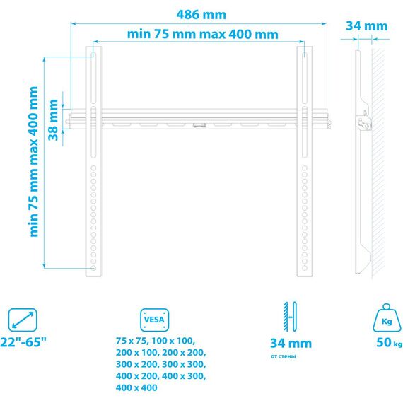 | Поддержка крепления VESA | 100x100, 200x100, 200x200, 200x300, 300x100, 300x200, 300x300, 300x400, 400x200, 400x300, 400x400, 50x50, 75x75 |