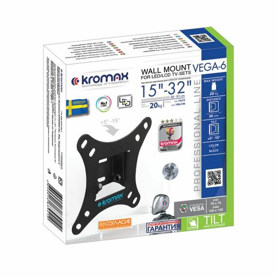 Кронштейн для телевизора Kromax VEGA-6 new черный 15"-32" макс.20кг настенный наклон [24044]