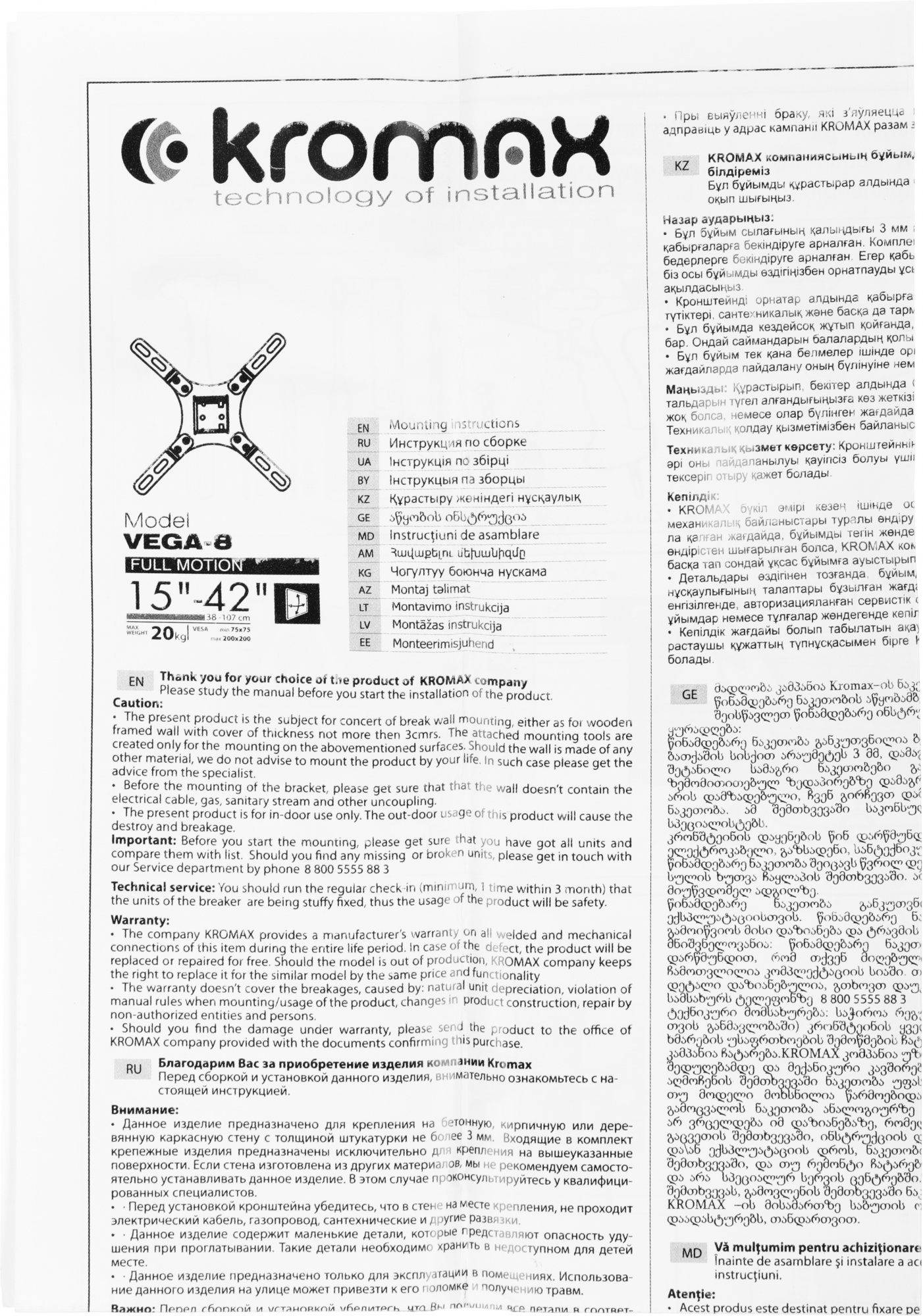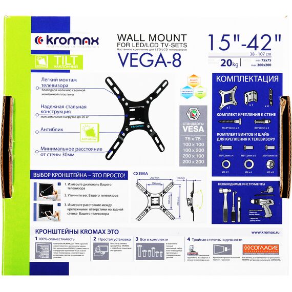 Кронштейн для телевизора Kromax VEGA-8 черный 15"-42" макс.15кг настенный наклон [24048]