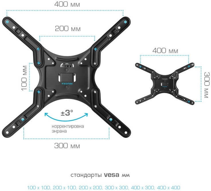- Крепежные отверстия (VESA) 100 x 100, 200 x 100, 200 x 200, 300 x 300, 400 x 300, 400 x 400