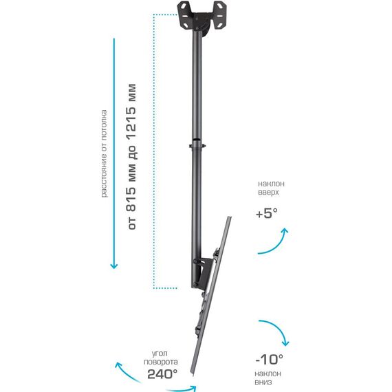 - Максимальное расстояние от стены/потолка: 1215 мм
