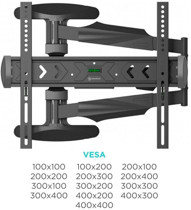 - Крепежные отверстия (VESA), мм 100x100, 200x100, 200x200, 200x300, 200x400, 300x200, 300x300, 300x400, 400x200, 400x300, 400x400 мм