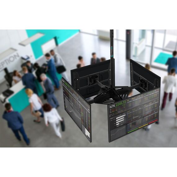 Мультидисплейное потолочное крепление ONKRON CPRO2L-4 относится к кронштейнам профессиональной серии. Кронштейн рассчитан на размещение экрана диагональю от 32 до 55 дюймов. Максимальный выдерживаемый вес для каждого из четырех экранов составляет 36 кг.