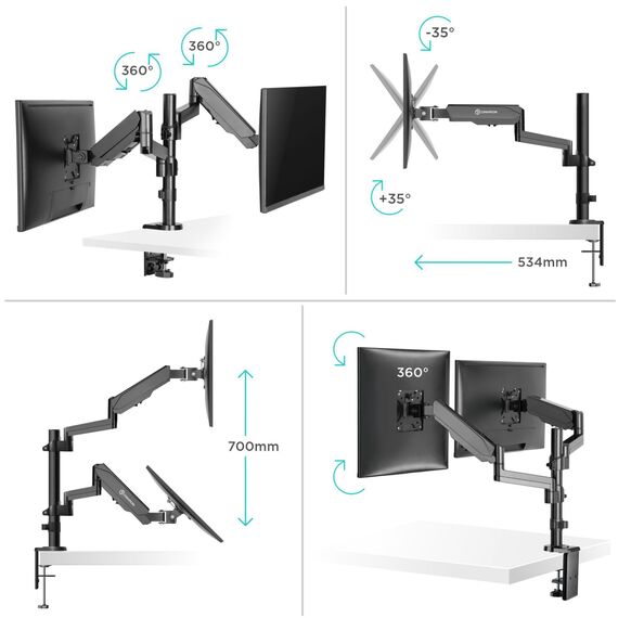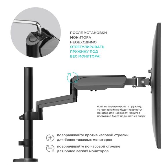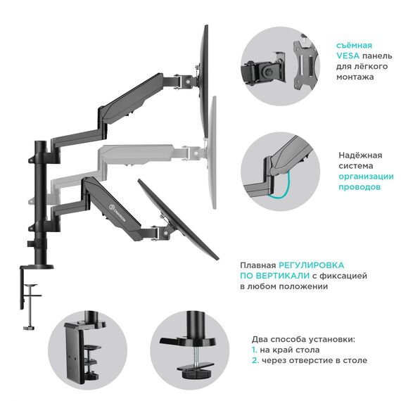- Газпатрон для регулировки высоты: Есть; позволяет без усилий регулировать положение дисплеев