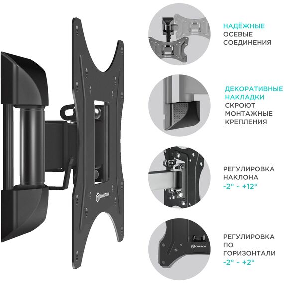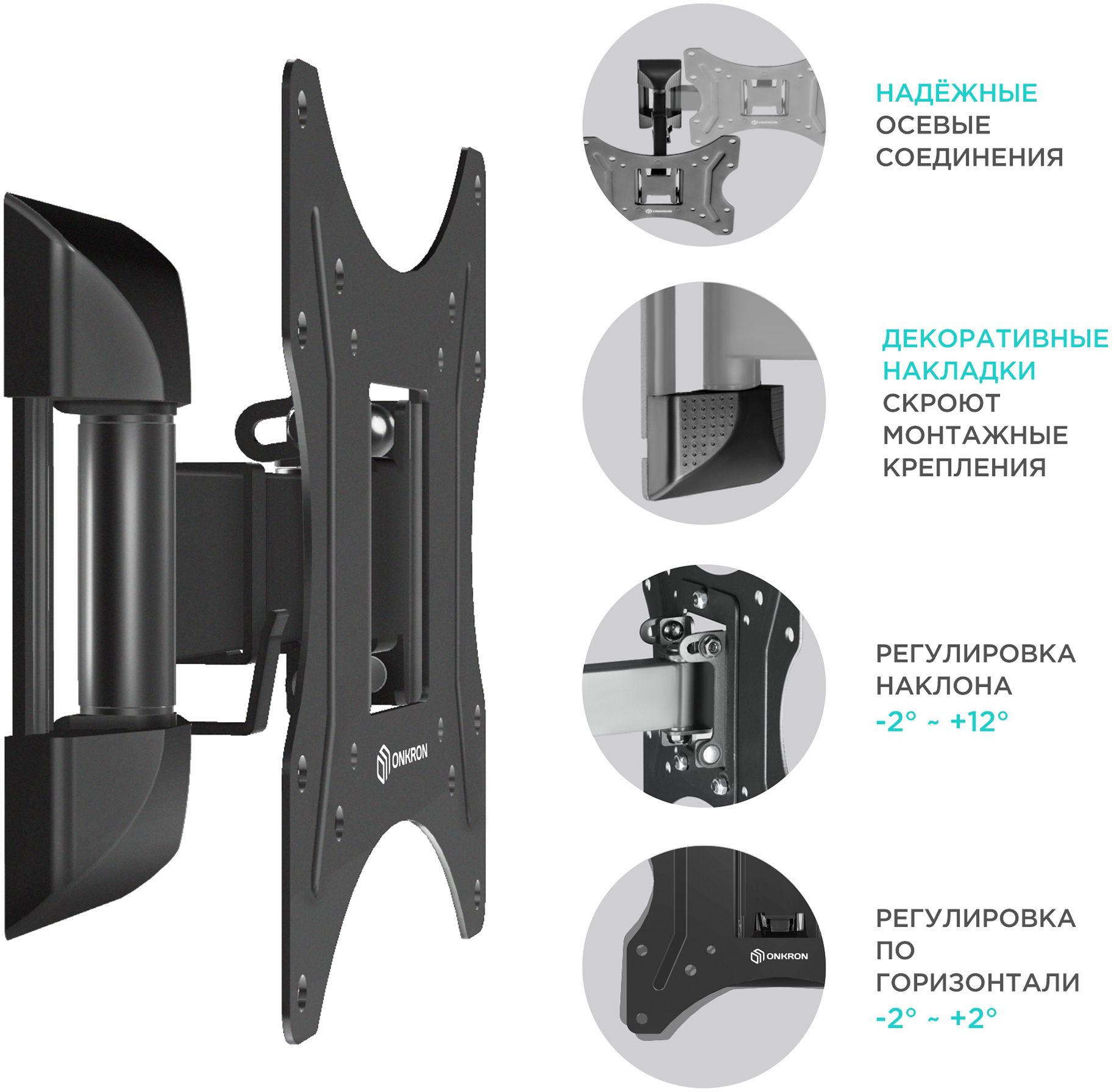 Кронштейн для телевизора ONKRON M2S черный 17"-43" макс.35кг настенный поворот и наклон