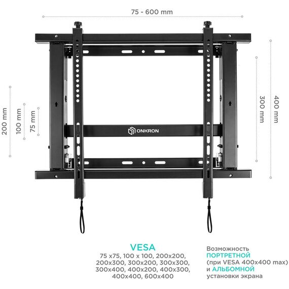 | Особенности | Сверхточная регулировка. ONKRON Push Up. Быстрая и лёгкая установка. Портретная и альбомная ориентация. |