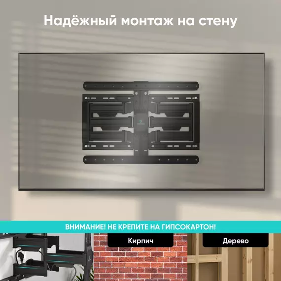 | Подходит для телевизоров c диагональю | 32", 37", 39", 40", 42", 43", 46", 48", 50", 52", 55", 60", 65", 70", 75", 85", 90 |