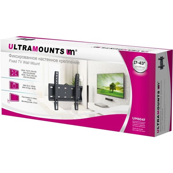 Кронштейн для телевизора Ultramounts UM804F черный 23"-42" макс.30кг настенный фиксированный