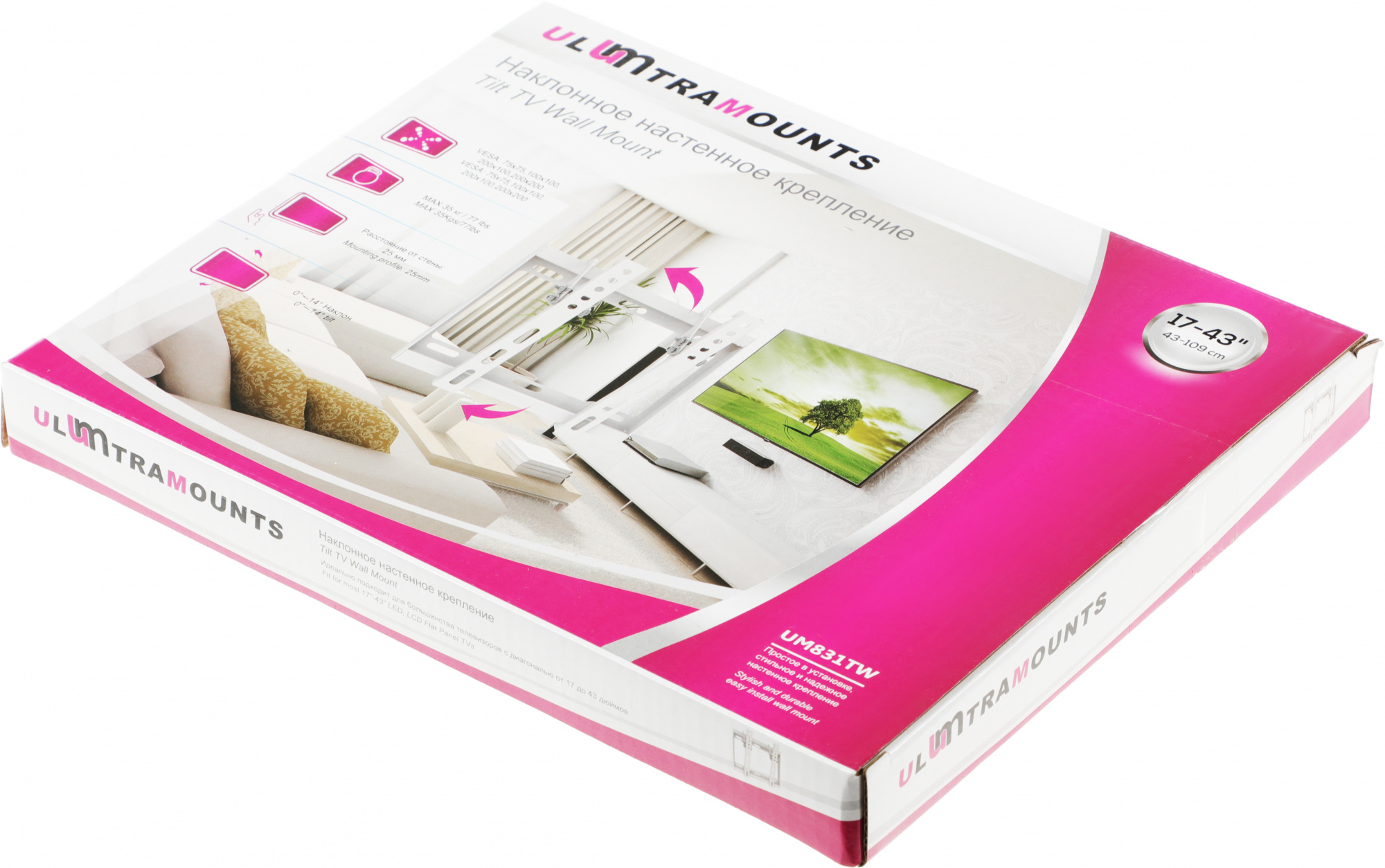 Кронштейн для телевизора Ultramounts UM831TW белый 17"-43" макс.35кг настенный наклон