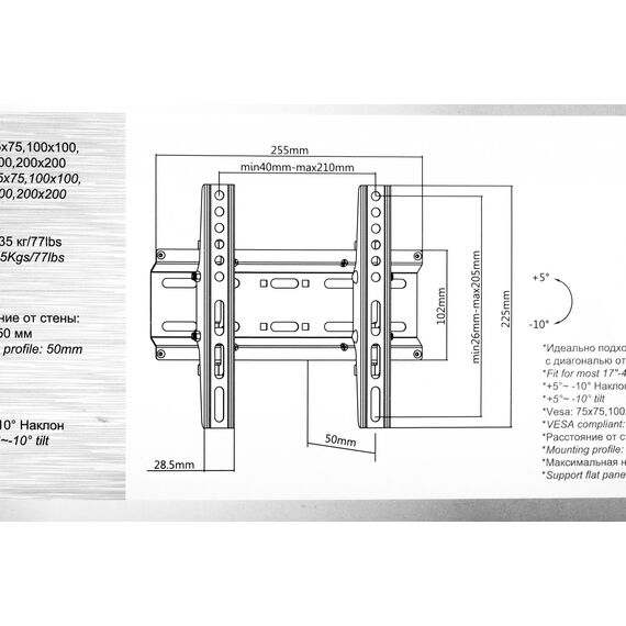 | Поддержка крепления VESA | 100x100, 200x100, 200x200, 75x75 |