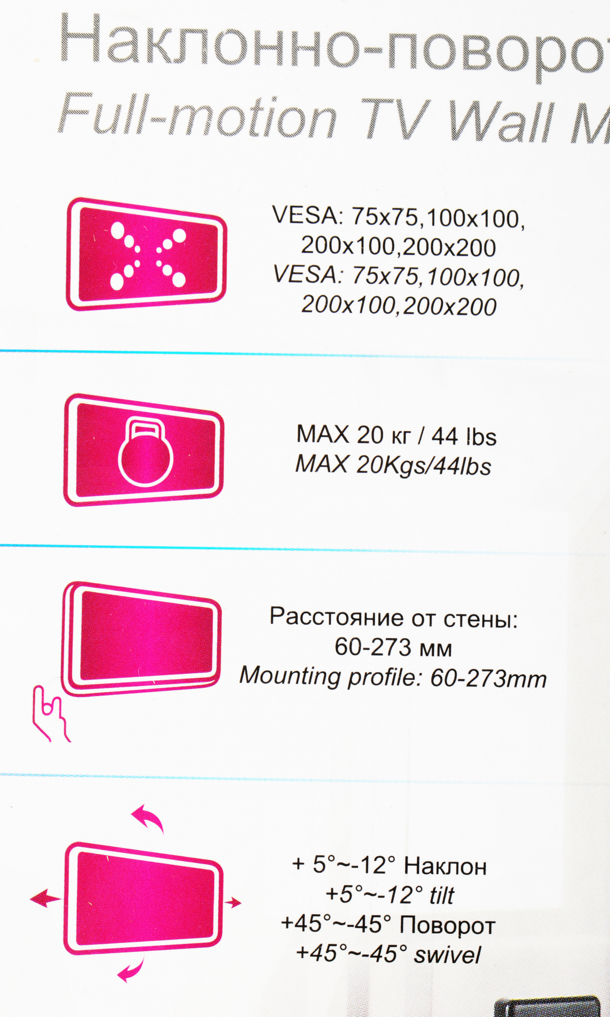 | Поддержка крепления VESA | 100x100, 200x100, 200x200, 75x75 |