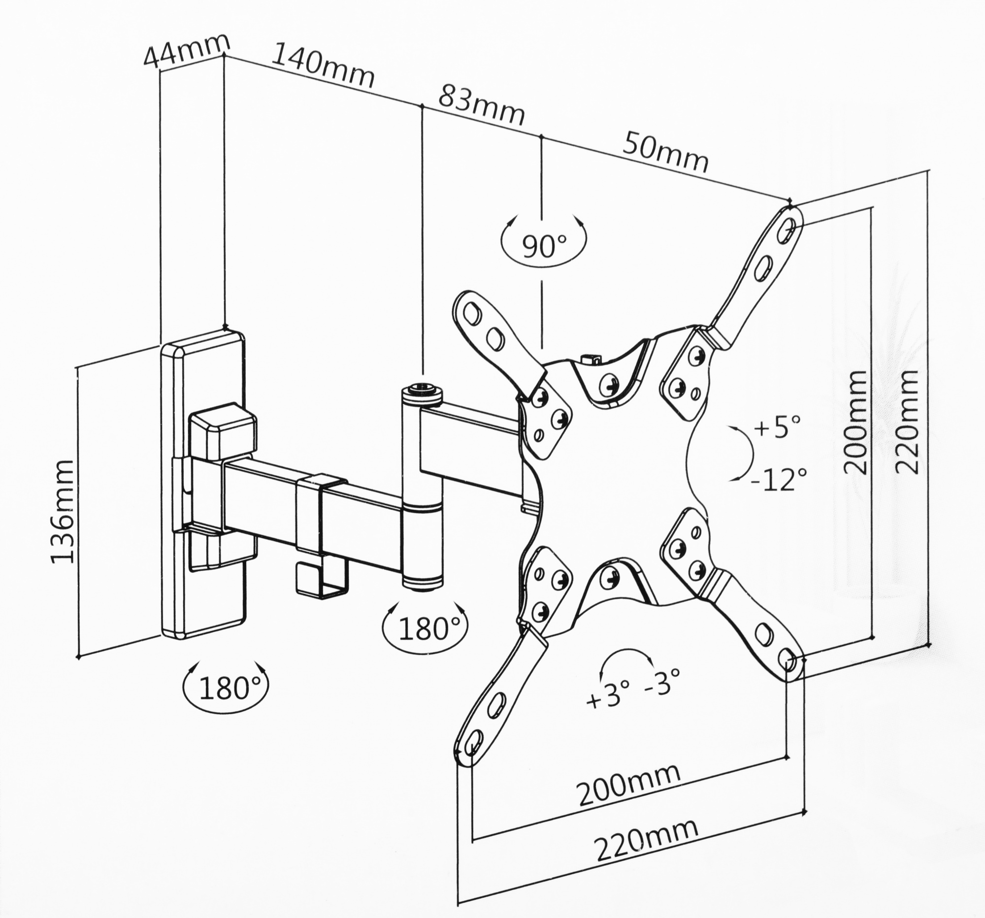 | Подходит для телевизоров c диагональю | 15", 19", 22", 24", 26", 28", 32", 37", 39", 40", 42" |