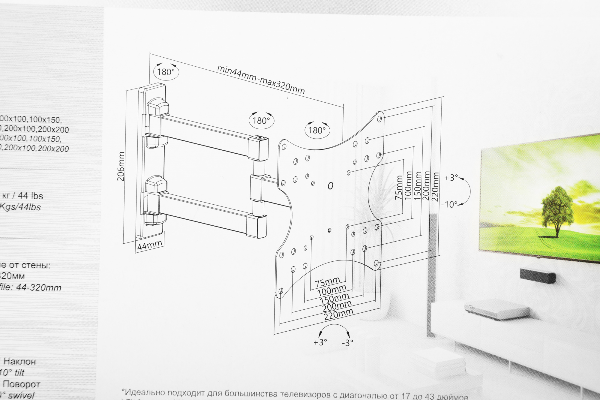 | Подходит для телевизоров c диагональю | 24", 26", 28", 32", 37", 39", 40", 42" |