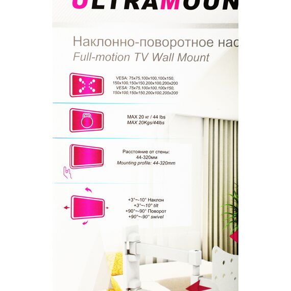 Кронштейн для телевизора Ultramounts UM867W белый 23"-42" макс.20кг настенный поворот и наклон