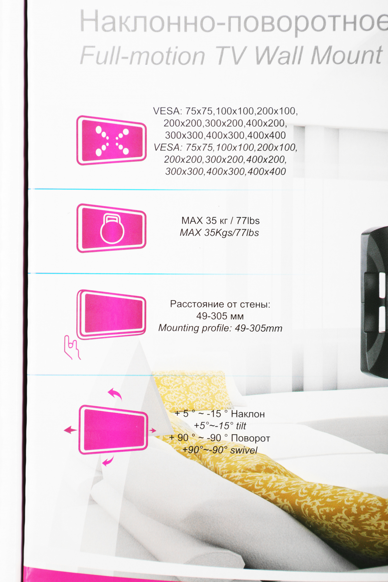 | Подходит для телевизоров c диагональю | 24", 26", 28", 32", 37", 39", 40", 42", 46", 48", 50", 52", 55" |