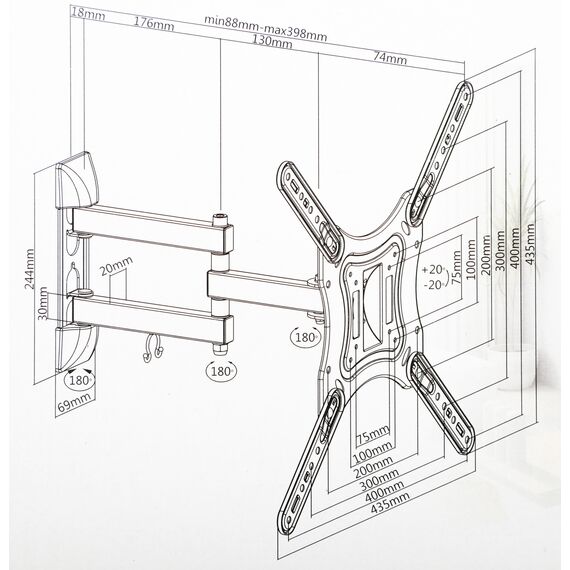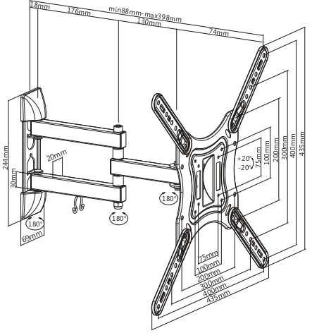 | Подходит для телевизоров c диагональю | 24", 26", 28", 32", 37", 39", 40", 42", 46", 48", 50", 52", 55" |