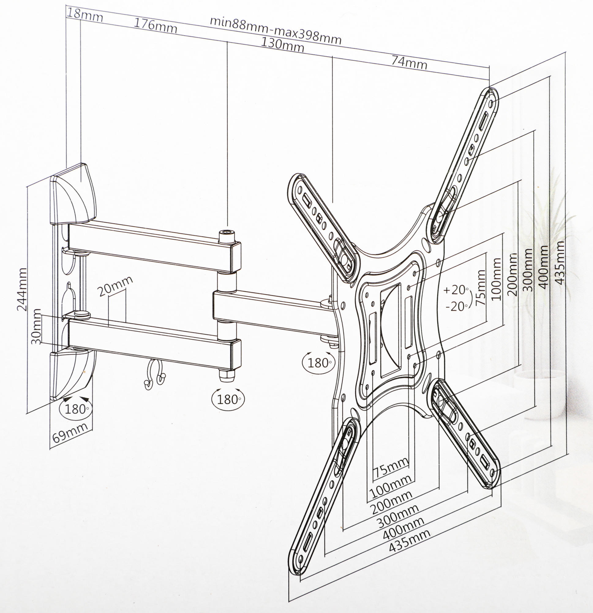 | Расстояние от стены / потолка (макс) | 39.8 см |