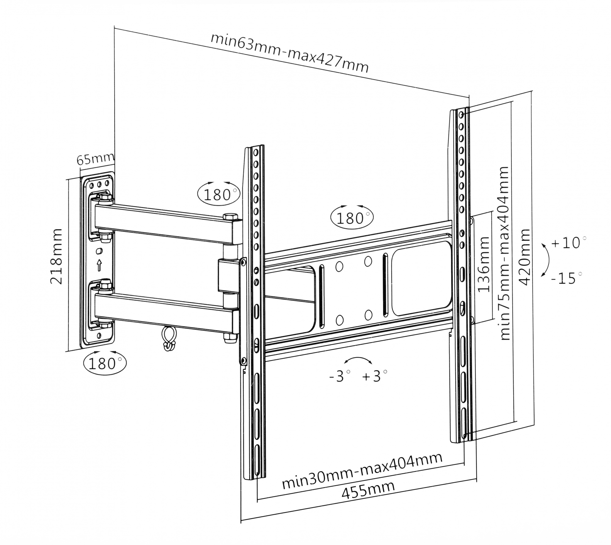 | Расстояние от стены / потолка (макс) | 42.7 см |