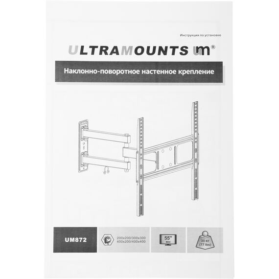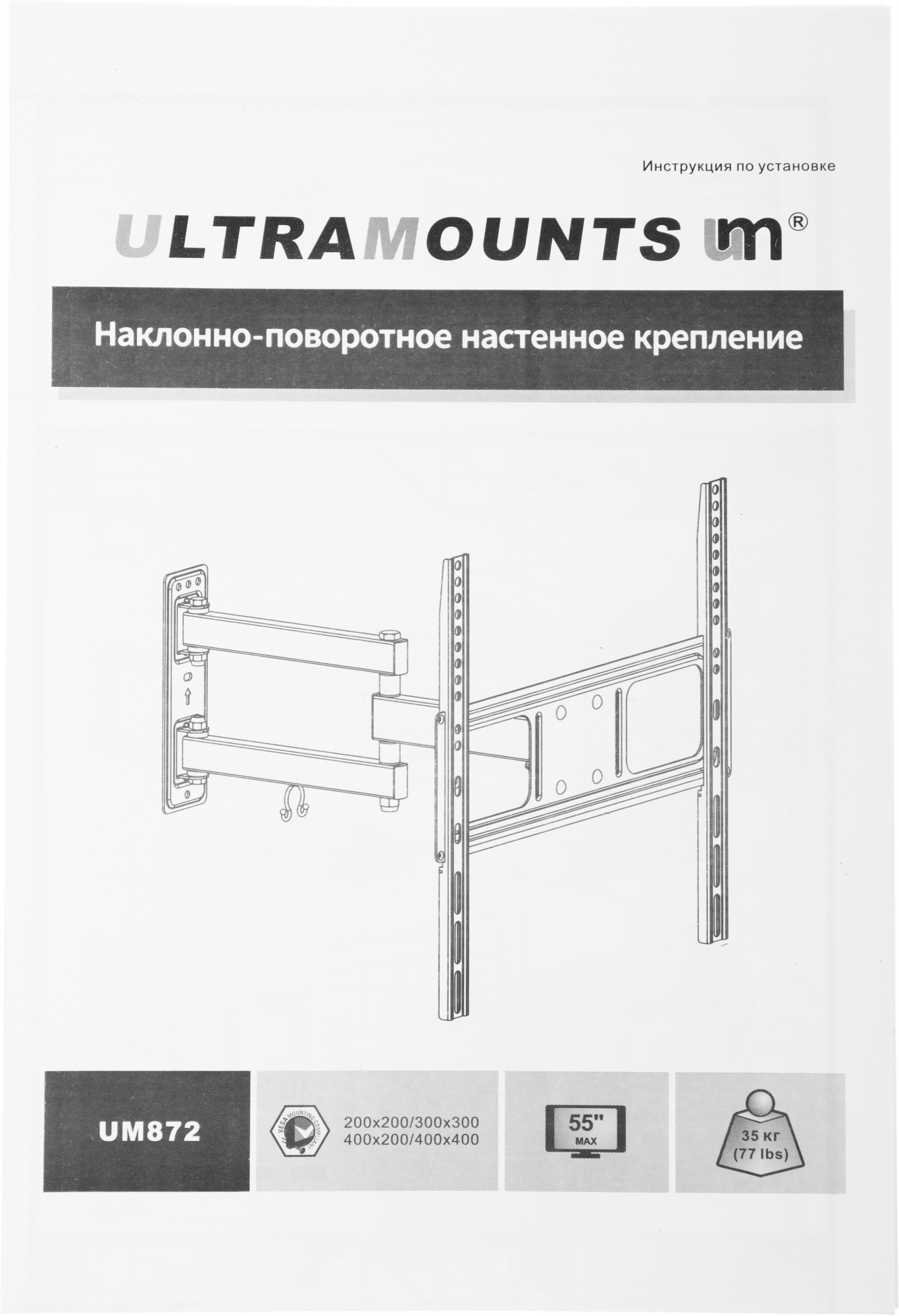 Кронштейн для телевизора Ultramounts UM872 черный 32"-55" макс.35кг настенный поворотно-выдвижной и наклонный