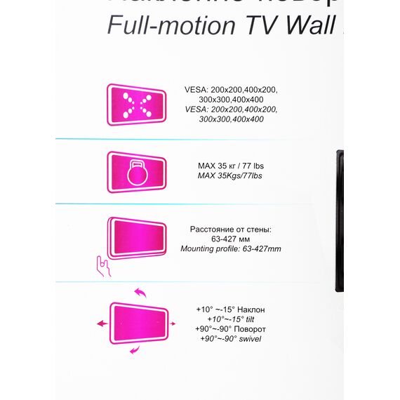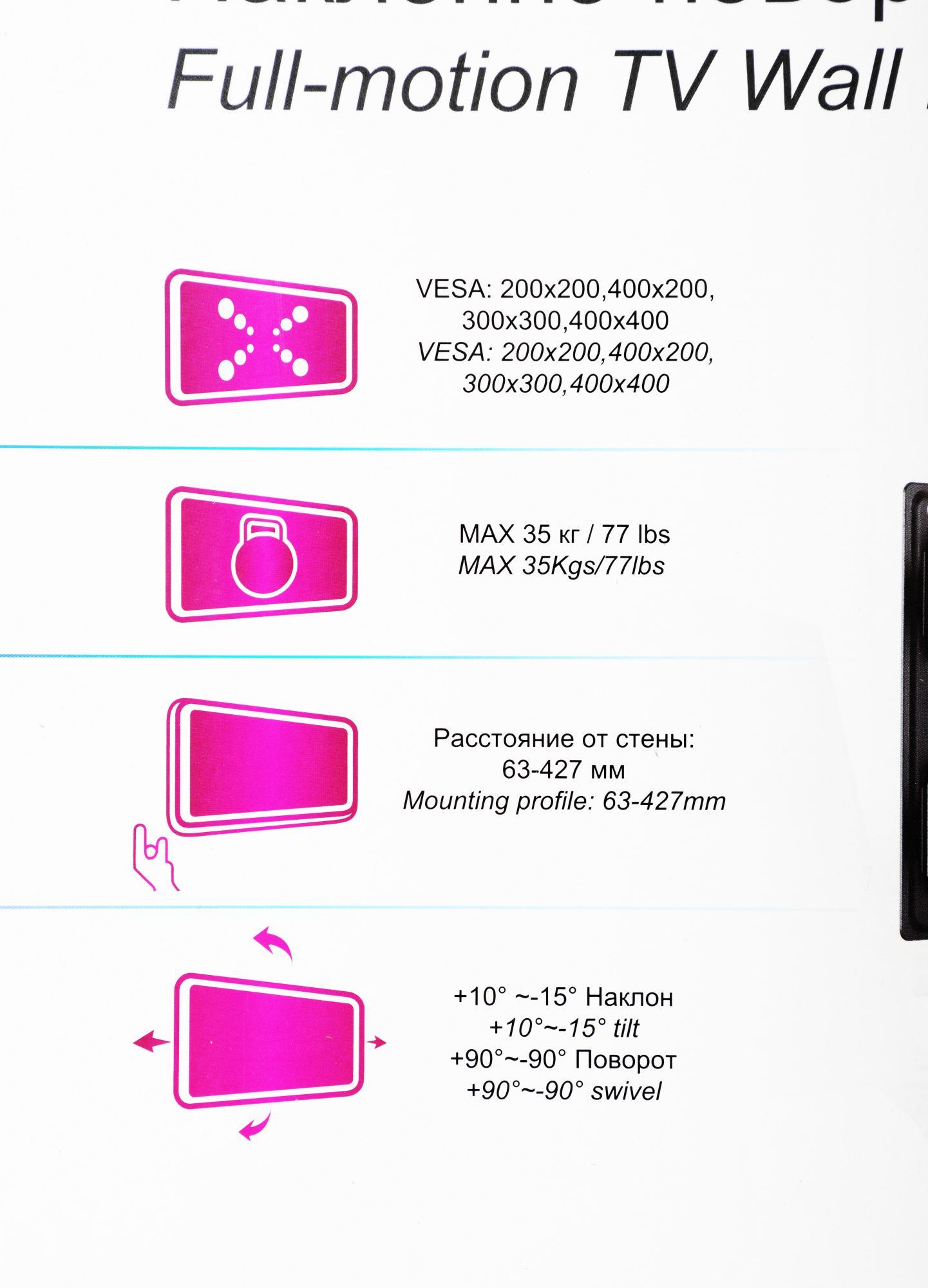 | Подходит для телевизоров c диагональю | 32", 37", 39", 40", 42", 46", 48", 50", 52", 55" |