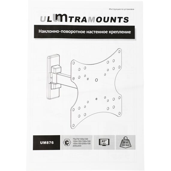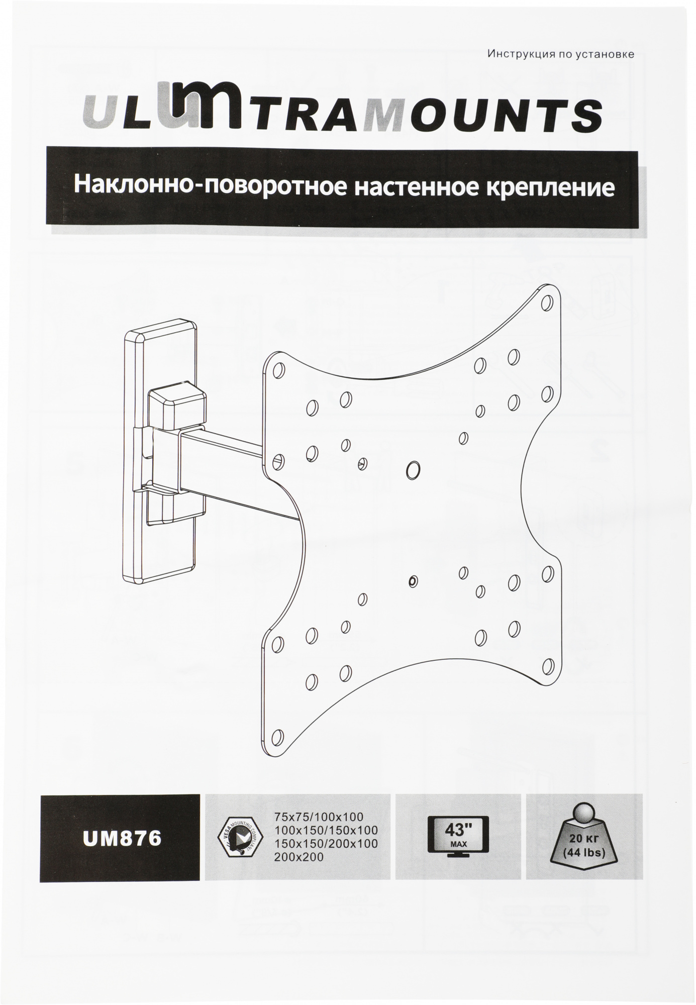 Кронштейн для телевизора Ultramounts UM876 черный 17"-42" макс.20кг настенный поворот и наклон