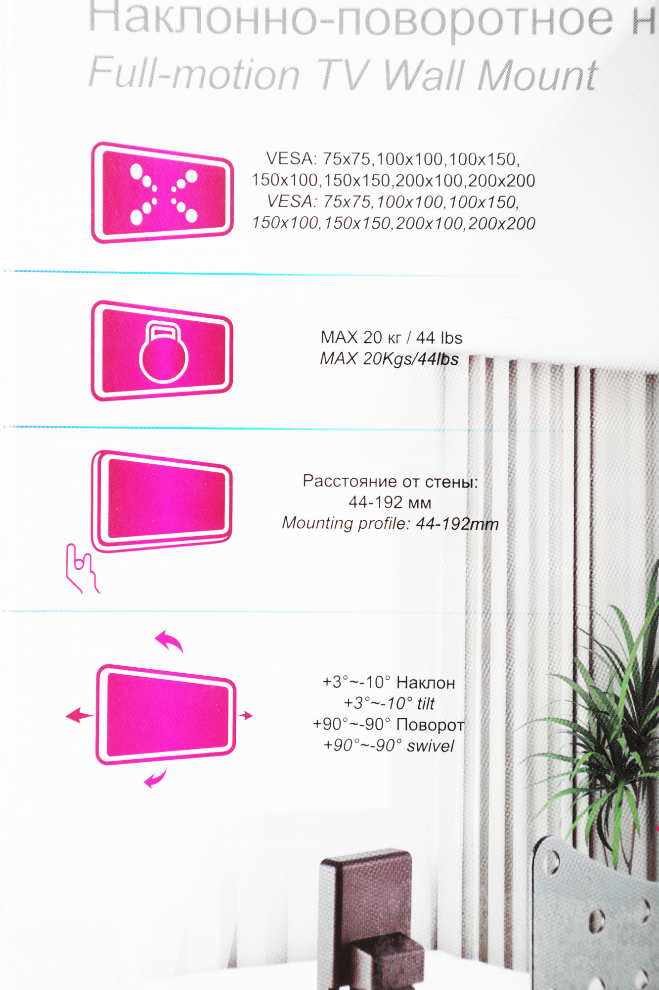 | Подходит для телевизоров c диагональю | 19", 22", 24", 26", 28", 32", 37", 39", 40", 42" |