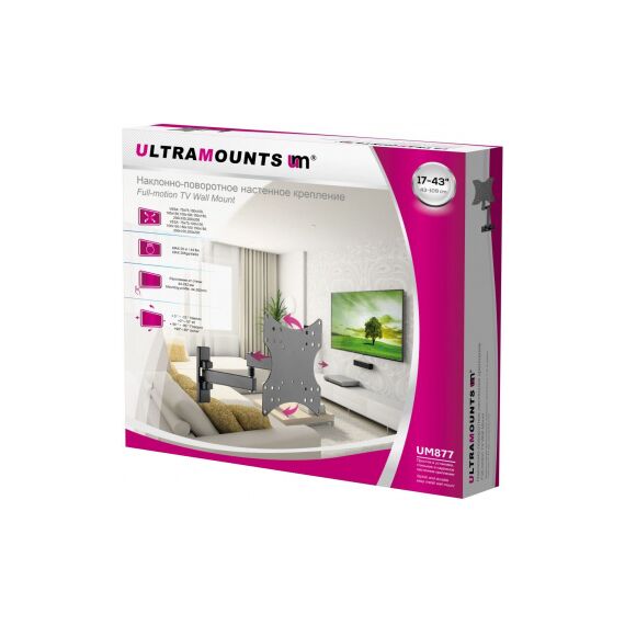 Кронштейн для телевизора Ultramounts UM877 черный 23"-42" макс.20кг настенный поворотно-выдвижной и наклонный