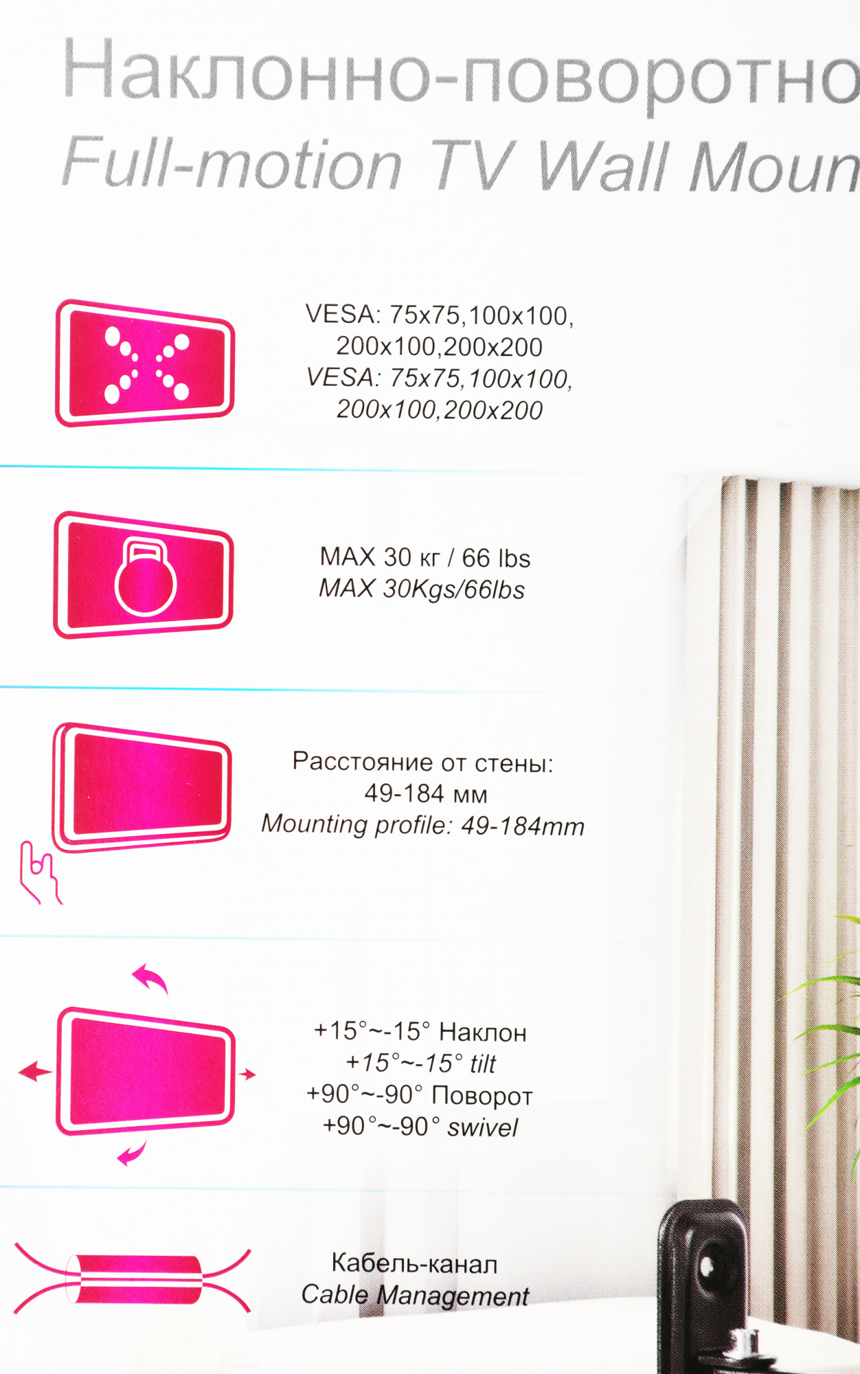 | Расстояние от стены / потолка (макс) | 18.4 см |