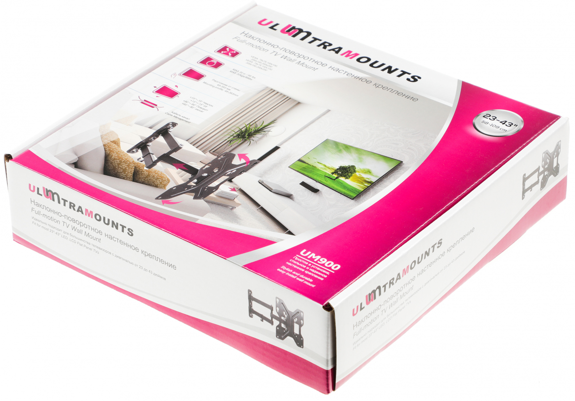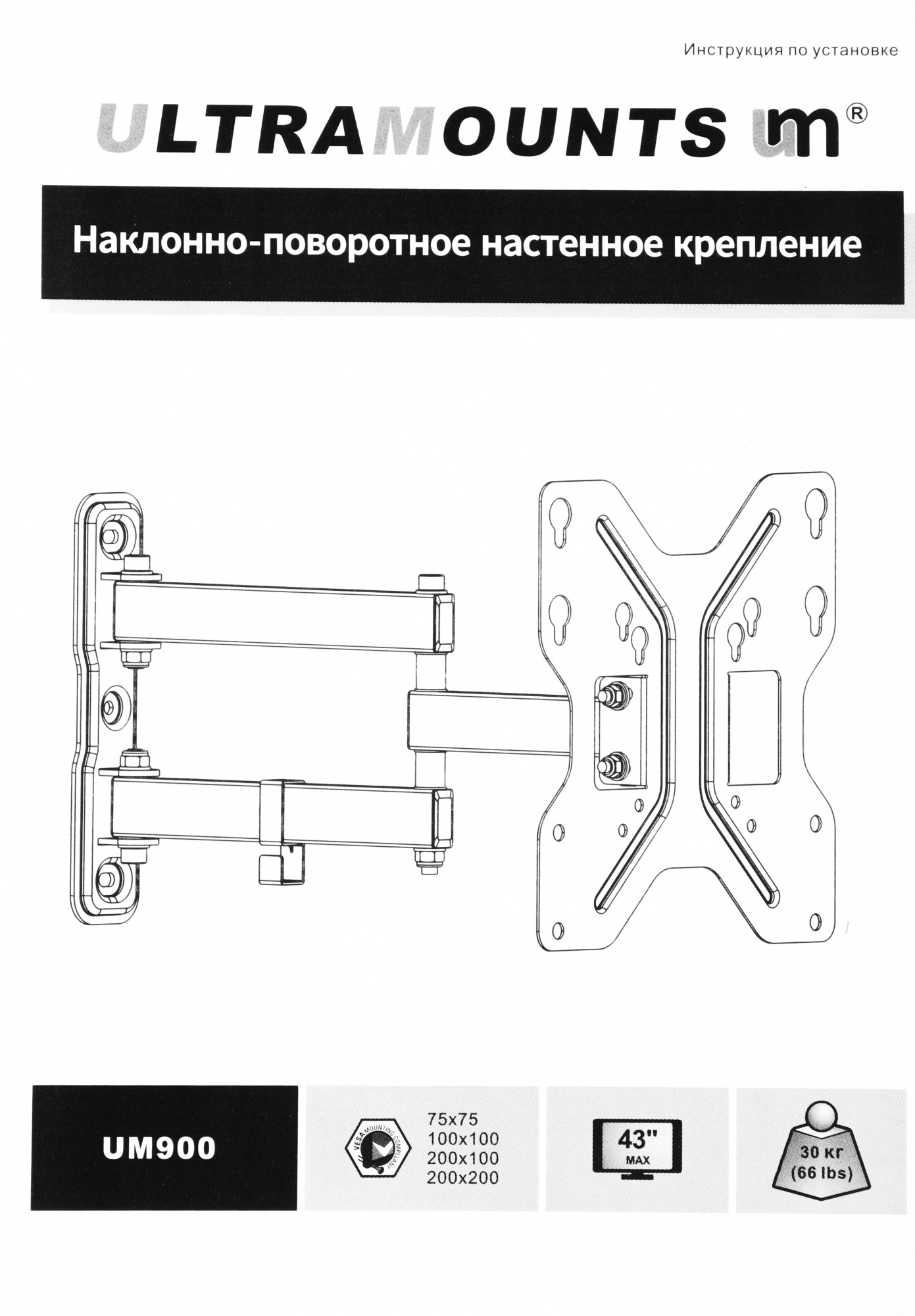 Кронштейн для телевизора Ultramounts UM900 черный 23"-43" макс.30кг настенный поворотно-выдвижной и наклонный