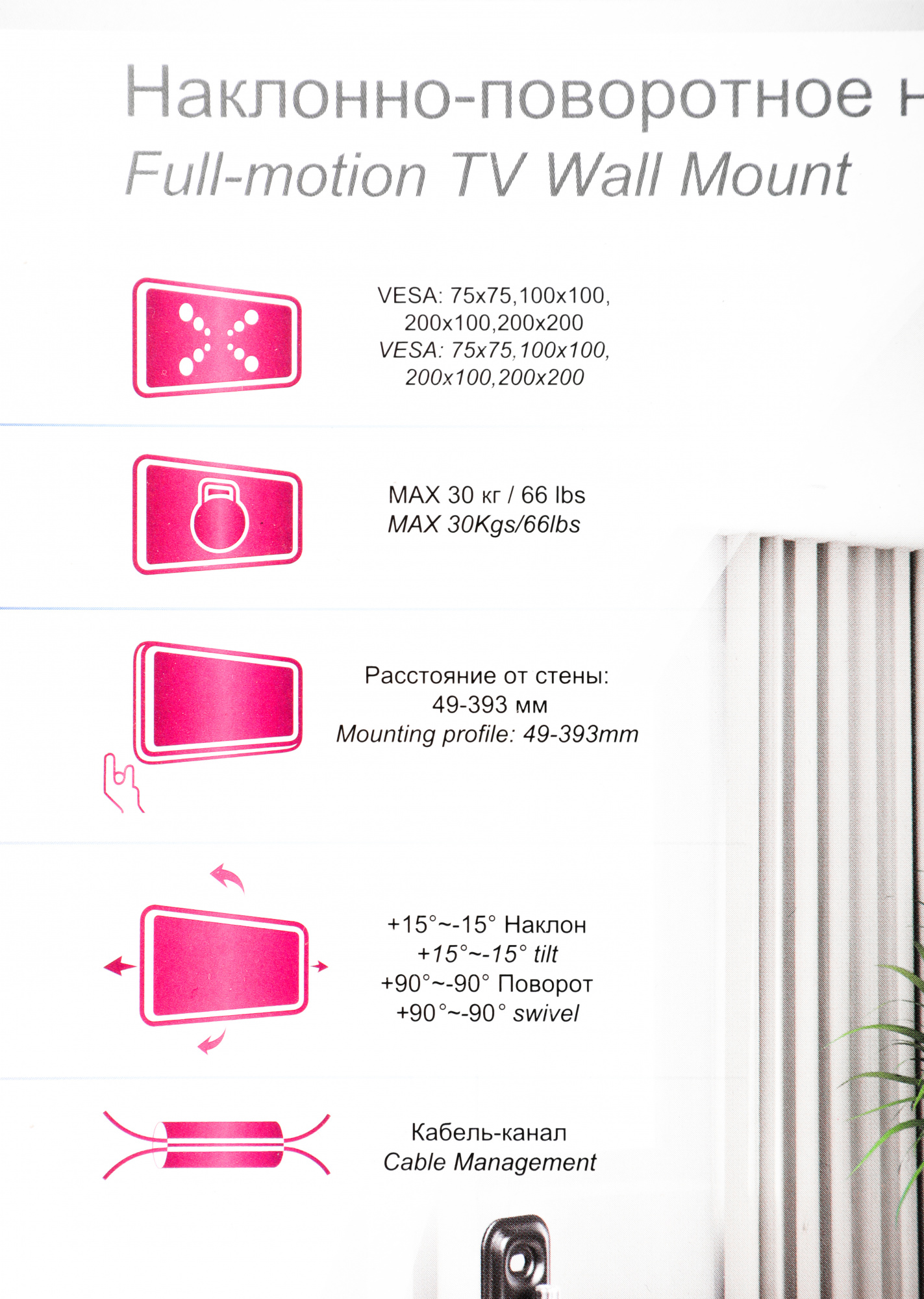 | Расстояние от стены / потолка (макс) | 39.3 см |