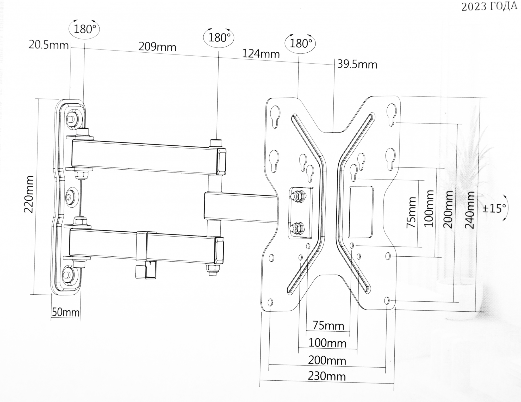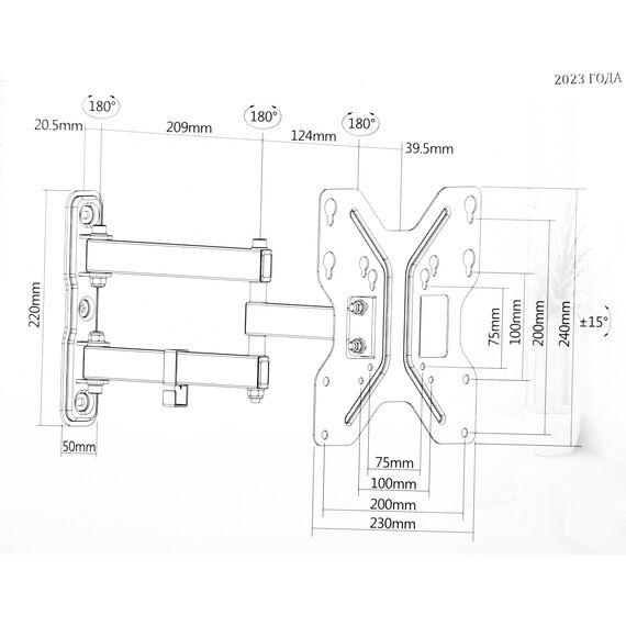 | Угол наклона | -15/+15 ° |