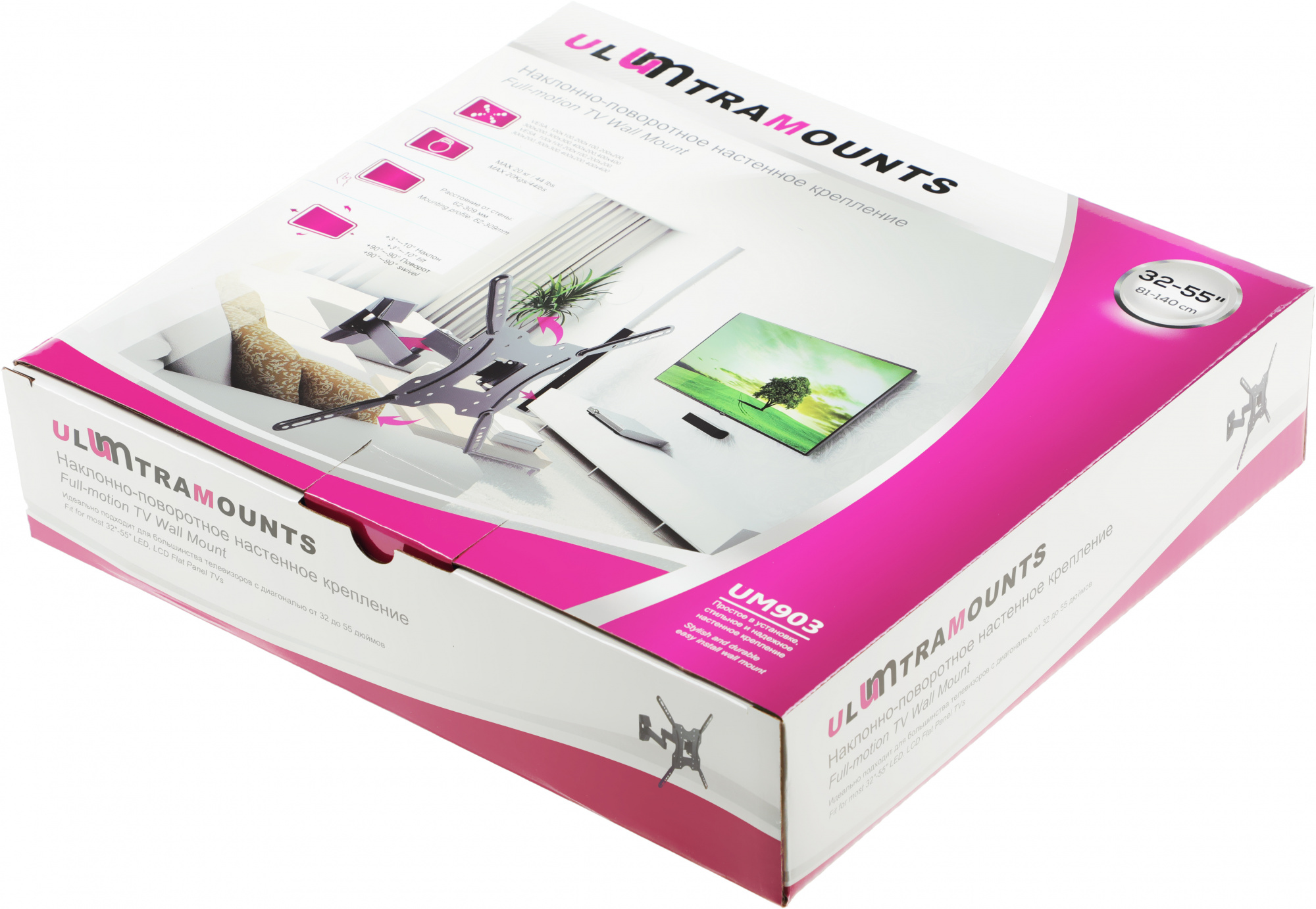 Кронштейн для телевизора Ultramounts UM903 черный 32"-55" макс.20кг настенный поворотно-выдвижной и наклонный