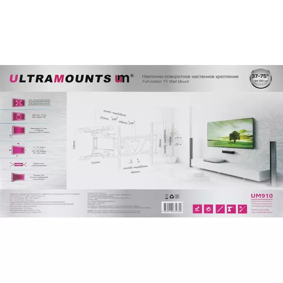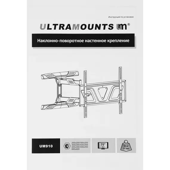 Кронштейн для телевизора Ultramounts UM910 черный 37"-75" макс.35кг настенный поворотно-выдвижной и наклонный
