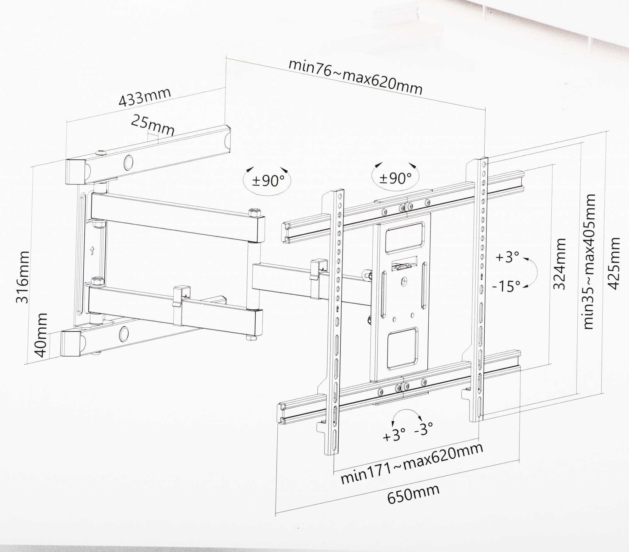 | Угол наклона | +3/-15 ° |