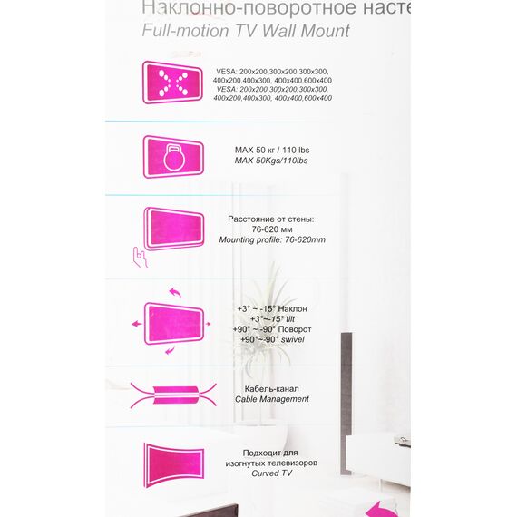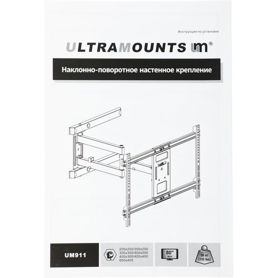 Кронштейн для телевизора Ultramounts UM911 черный 37"-80" макс.50кг настенный поворотно-выдвижной и наклонный