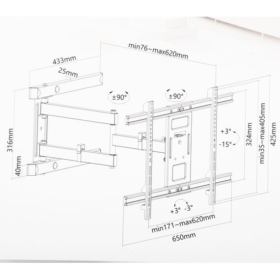 | Подходит для телевизоров c диагональю | 37", 39", 40", 42", 46", 48", 50", 52", 55", 60", 65", 70", 75" |
