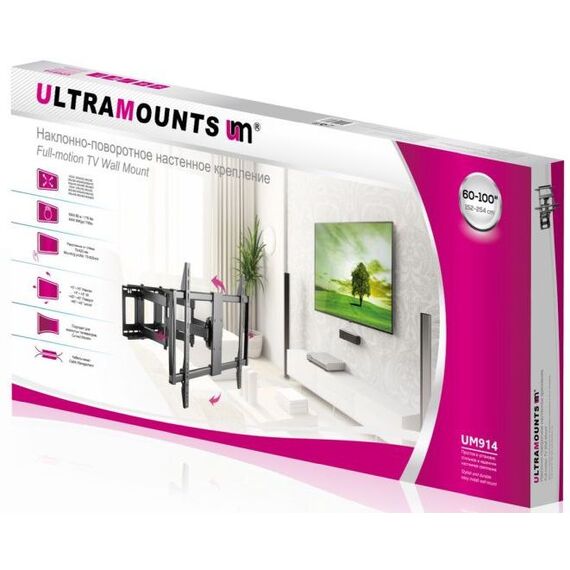 Кронштейн для телевизора Ultramounts UM914 черный 60-100 макс.80кг настенный поворотно-выдвижной и наклонный
