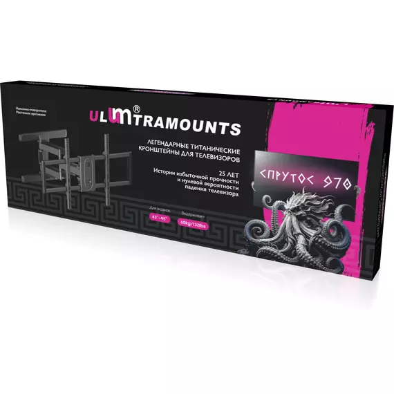 Кронштейн для телевизора Ultramounts UM970 черный 95"-120" макс.60кг настенный поворот и наклон