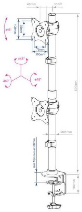 Настольный держатель для эргономичной регулировки положения 2 дисплеев с диагональю от 15 до 32 дюймов