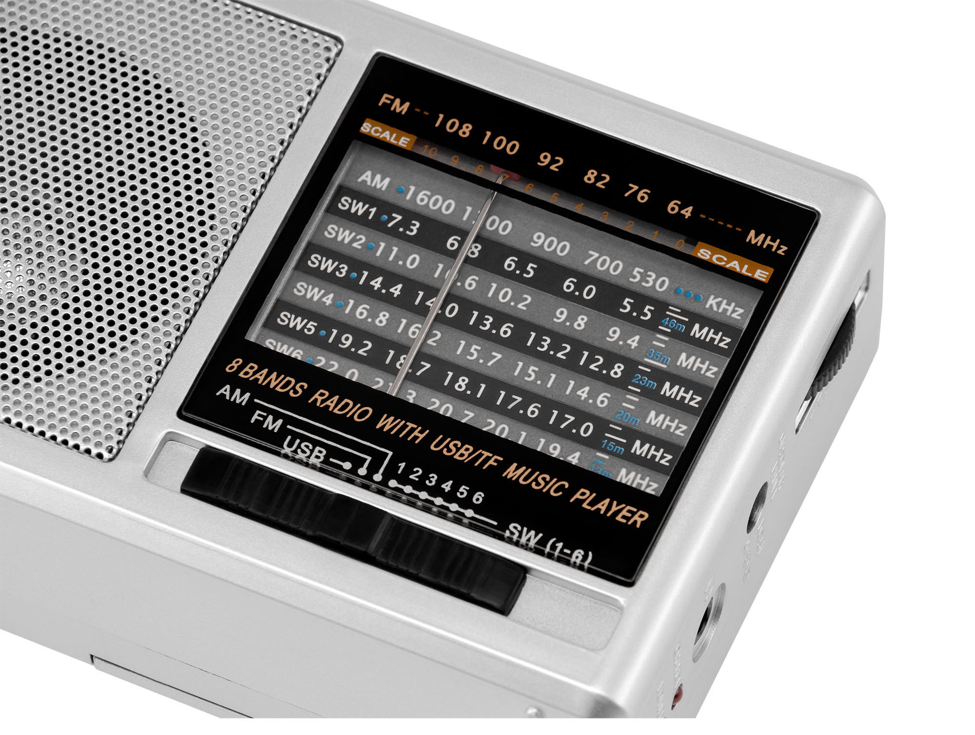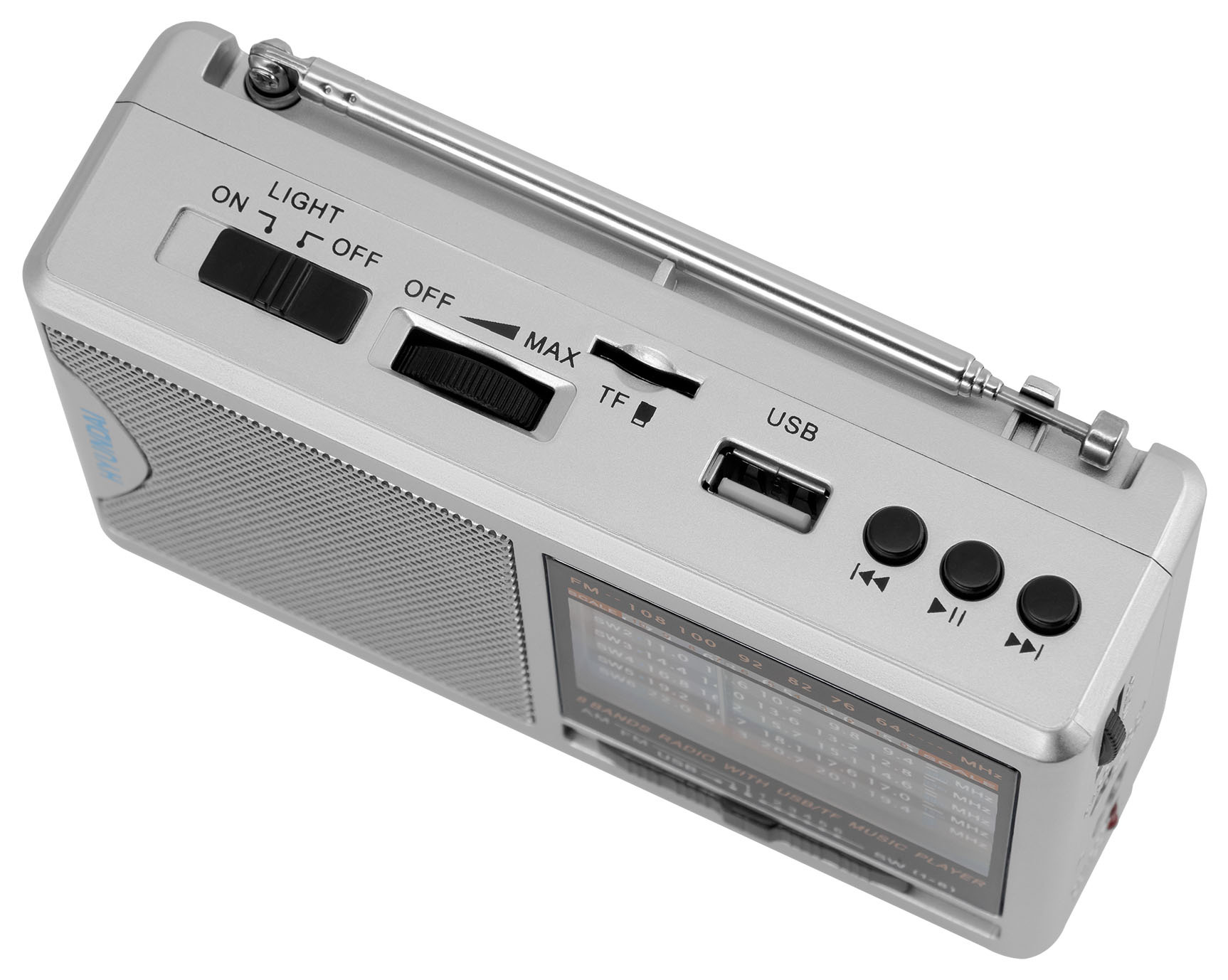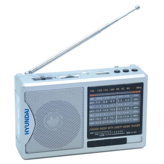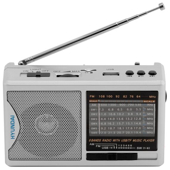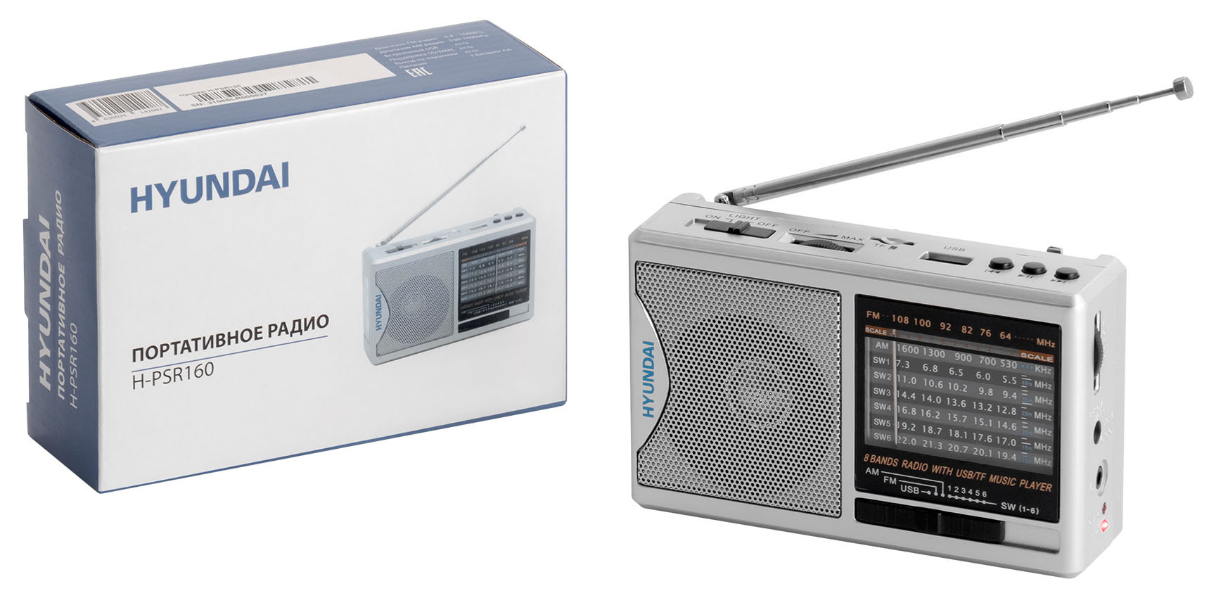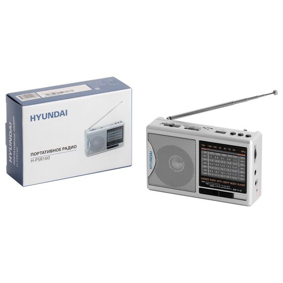 Радиоприемник портативный Hyundai H-PSR160 серебристый USB microSD [H-PSR160]