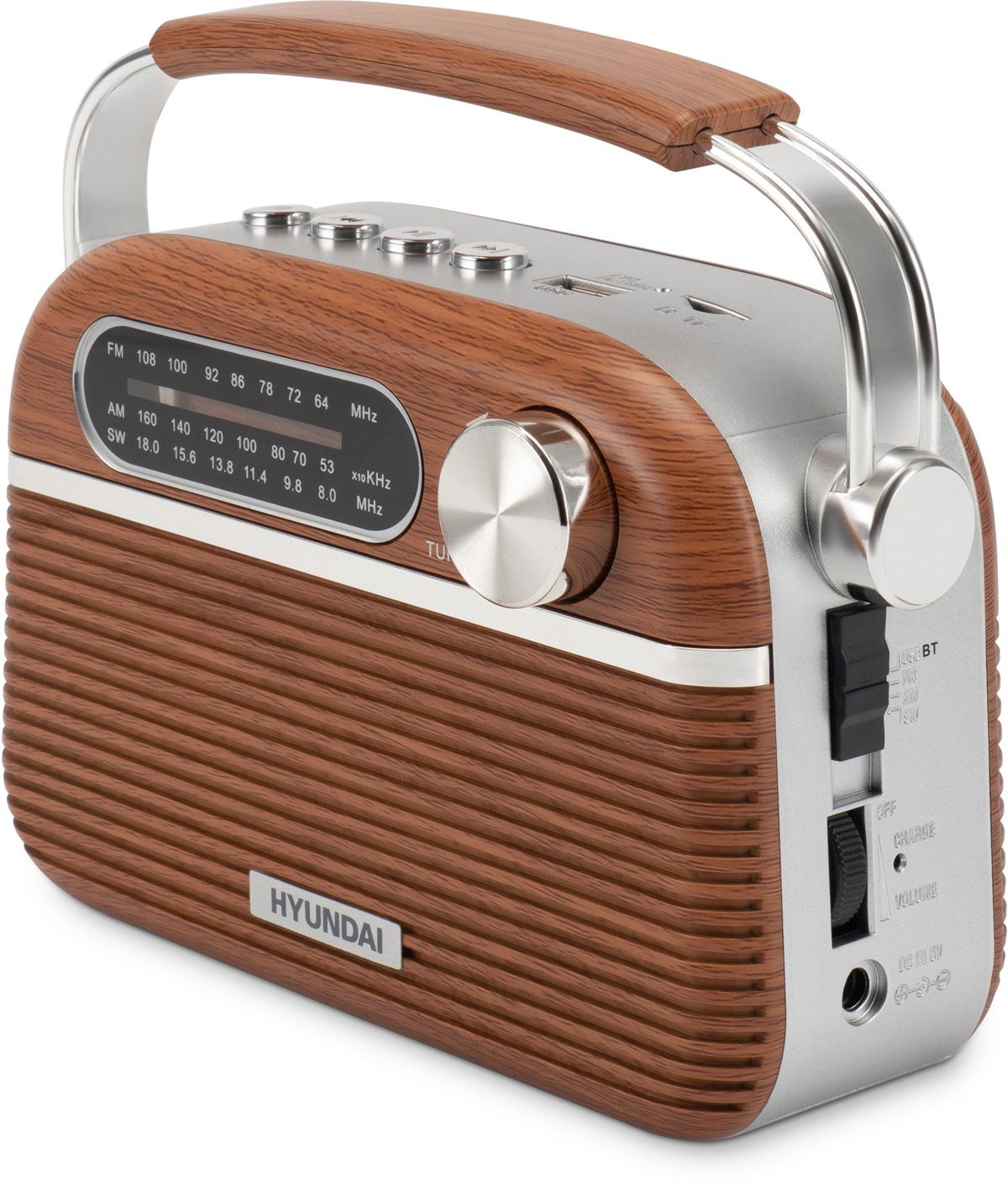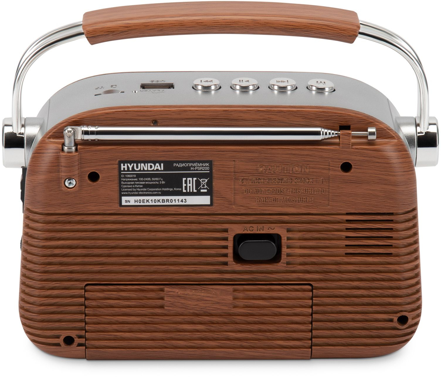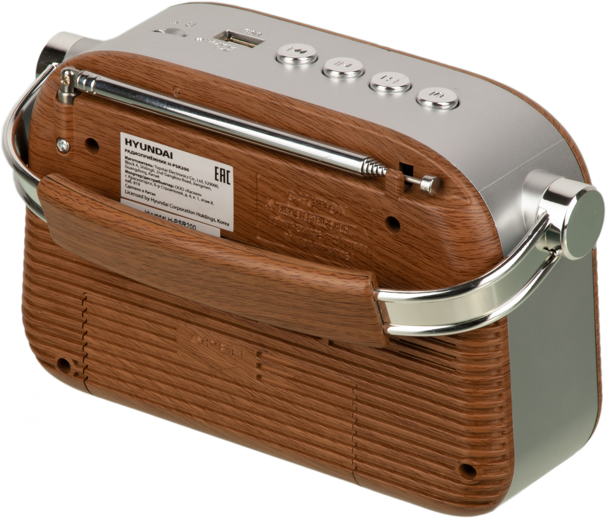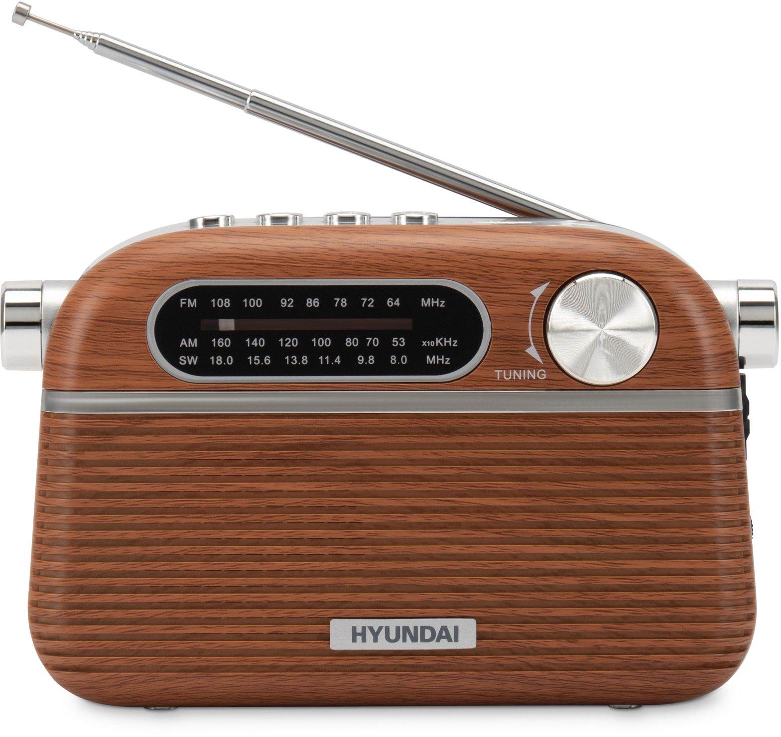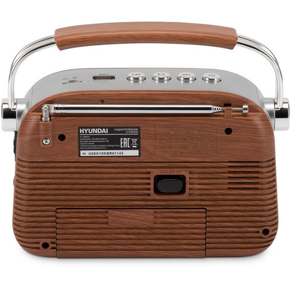 Радиоприемник Hyundai H-PSR200 портативный дерево коричневое/серебристый USB microSD