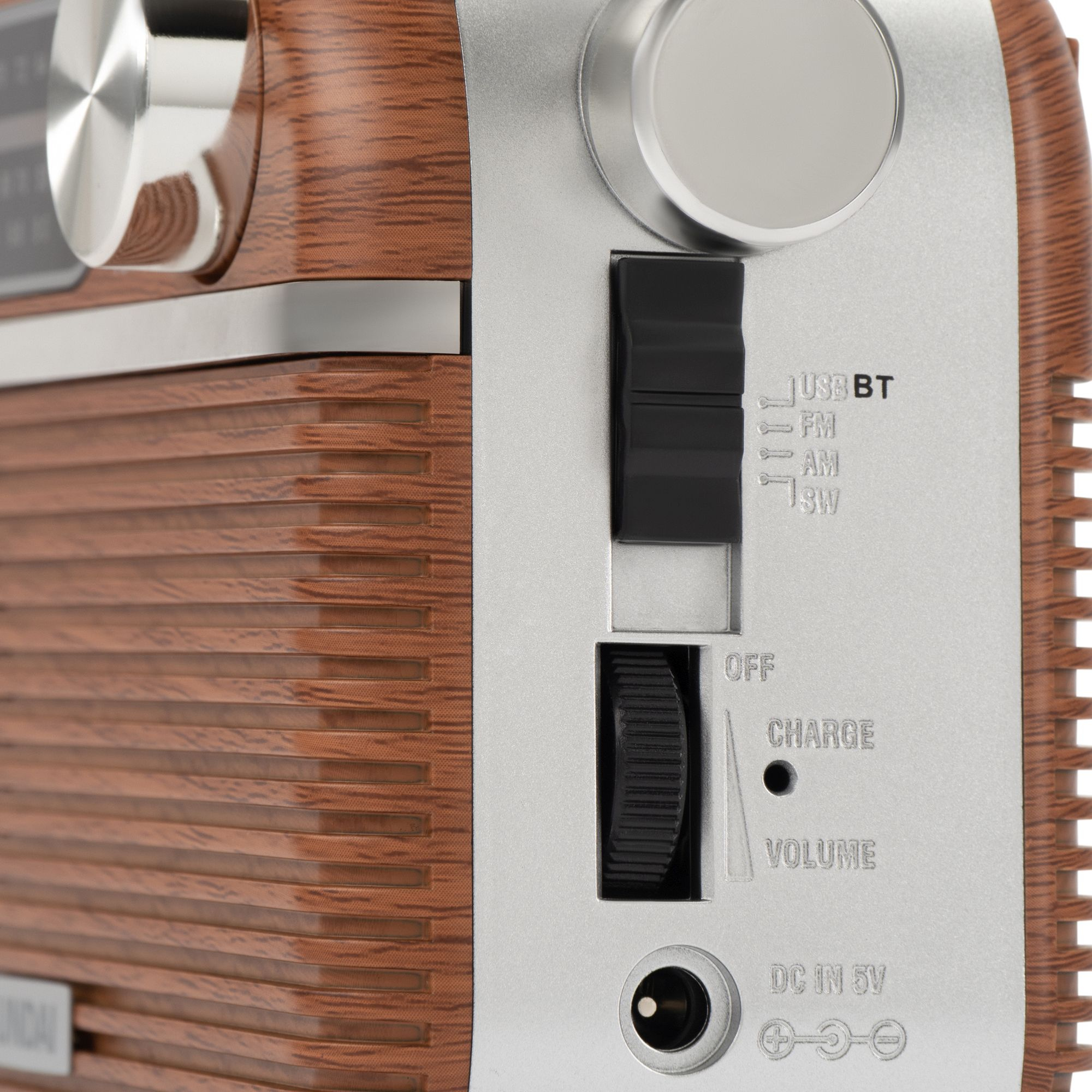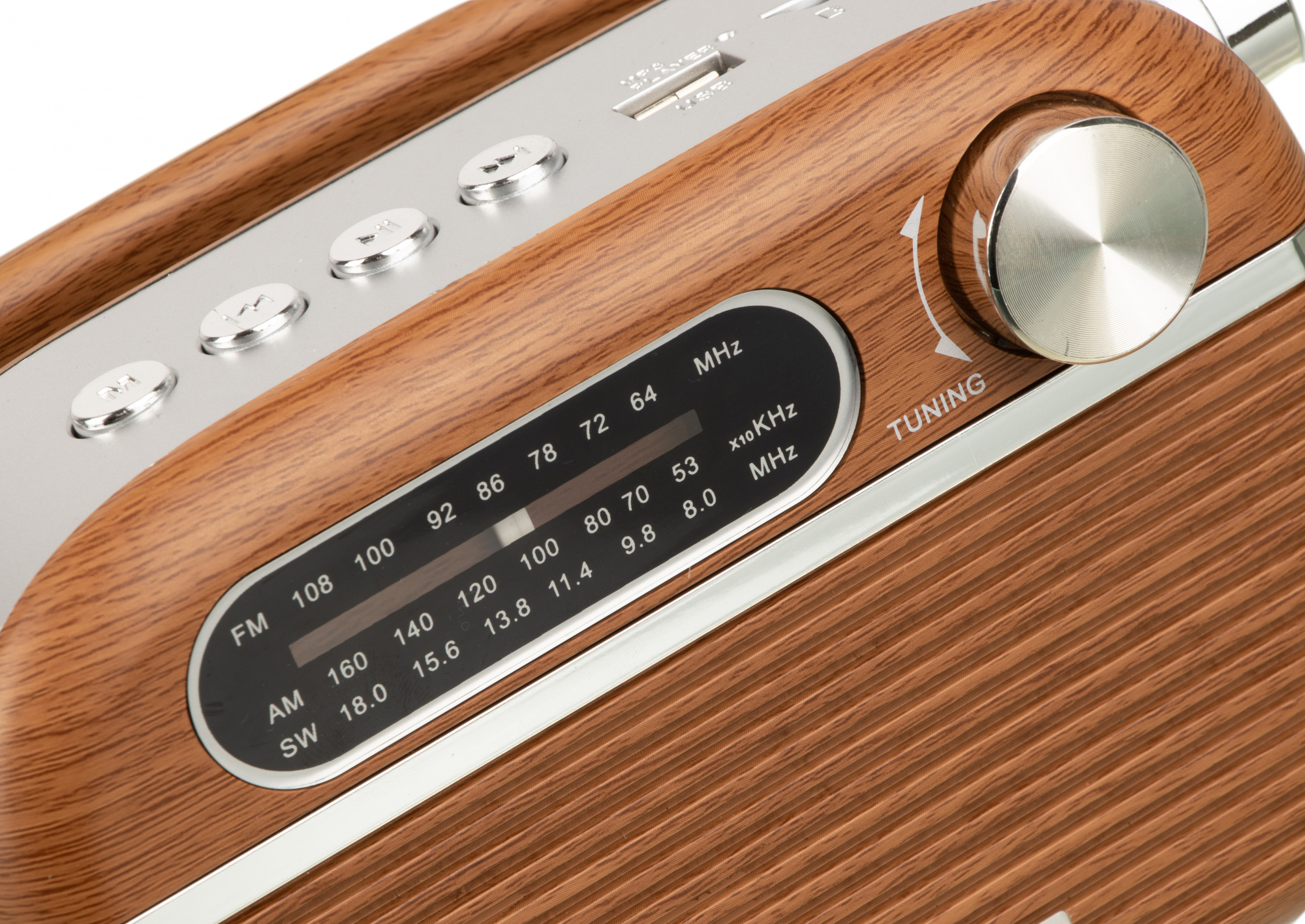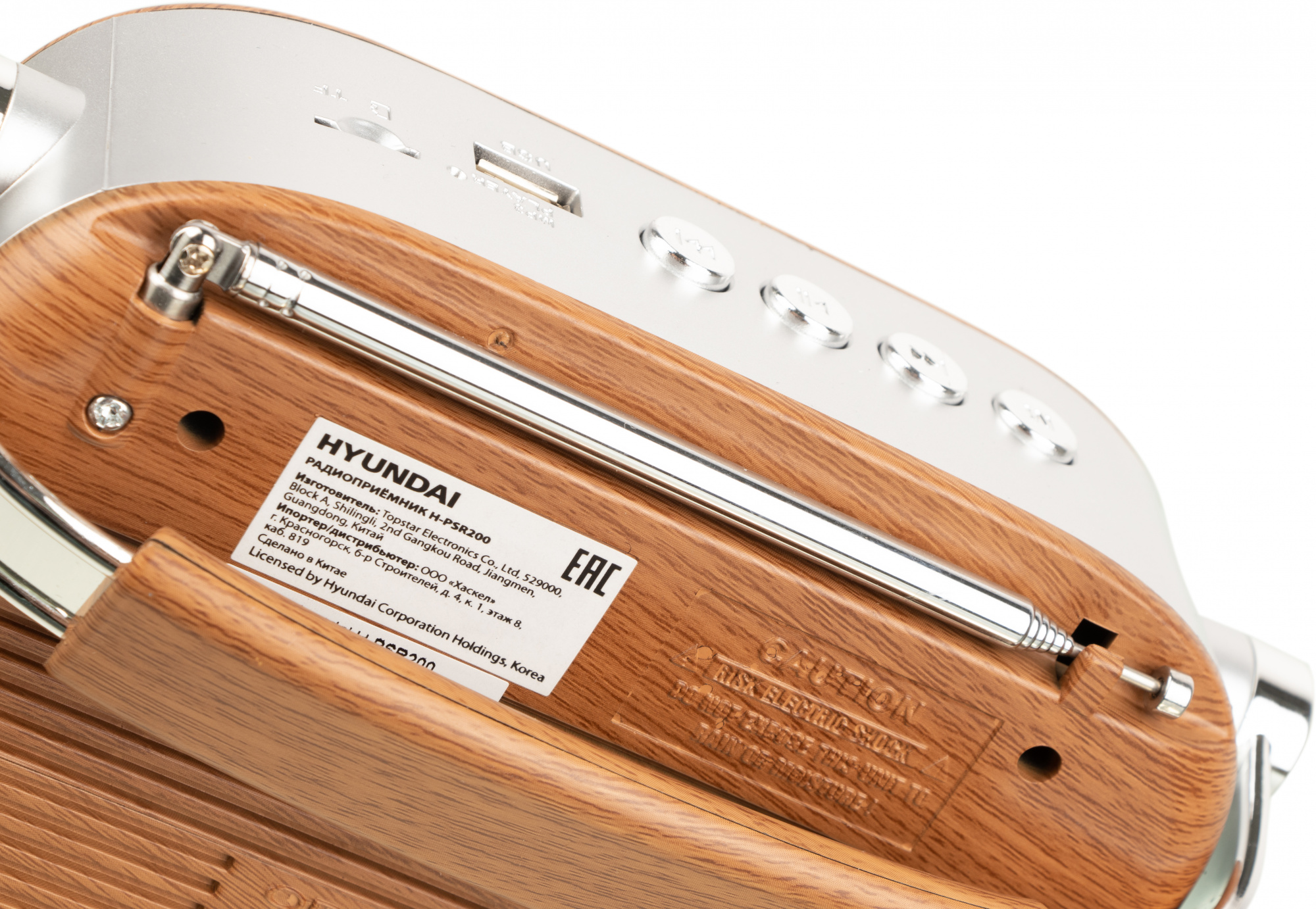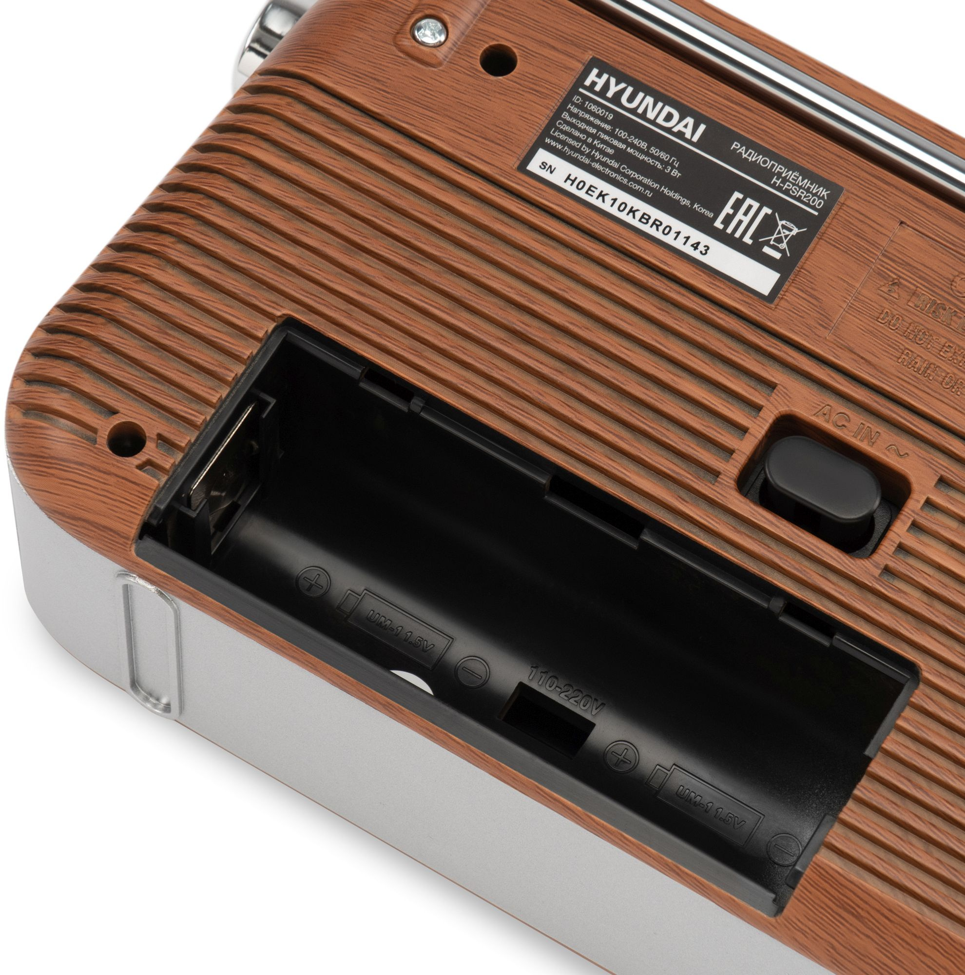 Радиоприемник Hyundai H-PSR200 портативный дерево коричневое/серебристый USB microSD
