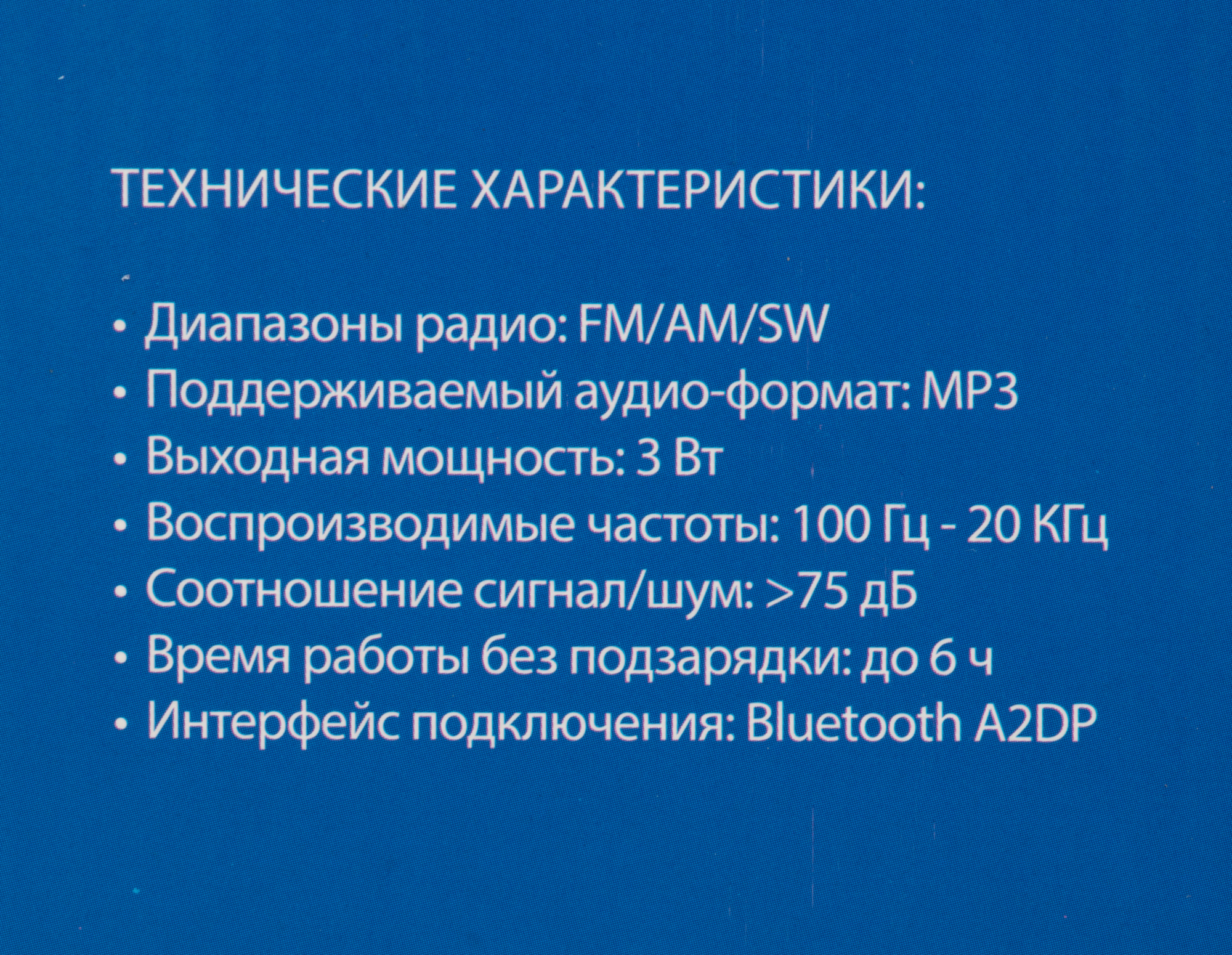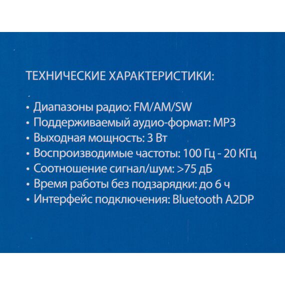 | Воспроизведение файлов | MP3 |