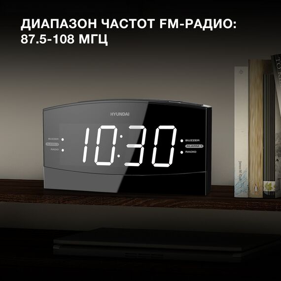 Радиобудильник Hyundai H-RCL238 черный LCD подсв:белая часы:цифровые FM