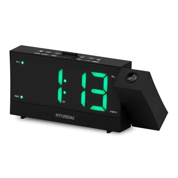 Радиобудильник Hyundai H-RCL243 черный LCD проек.изоб. подсв:зеленая часы:цифровые FM