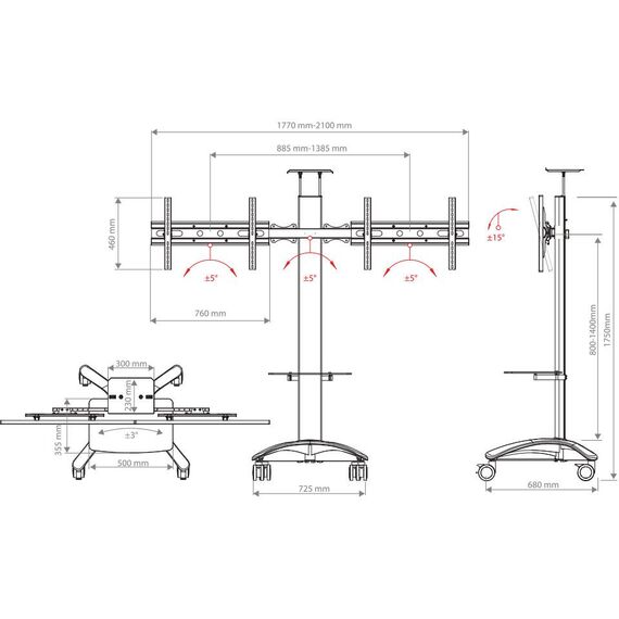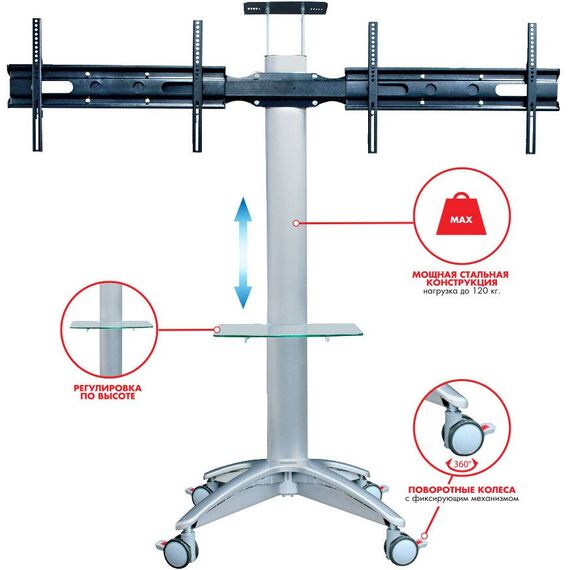 Подставка для телевизора ARM Media PT-STAND-15 серебристый 26-55 макс.120кг напольный наклон [10242]