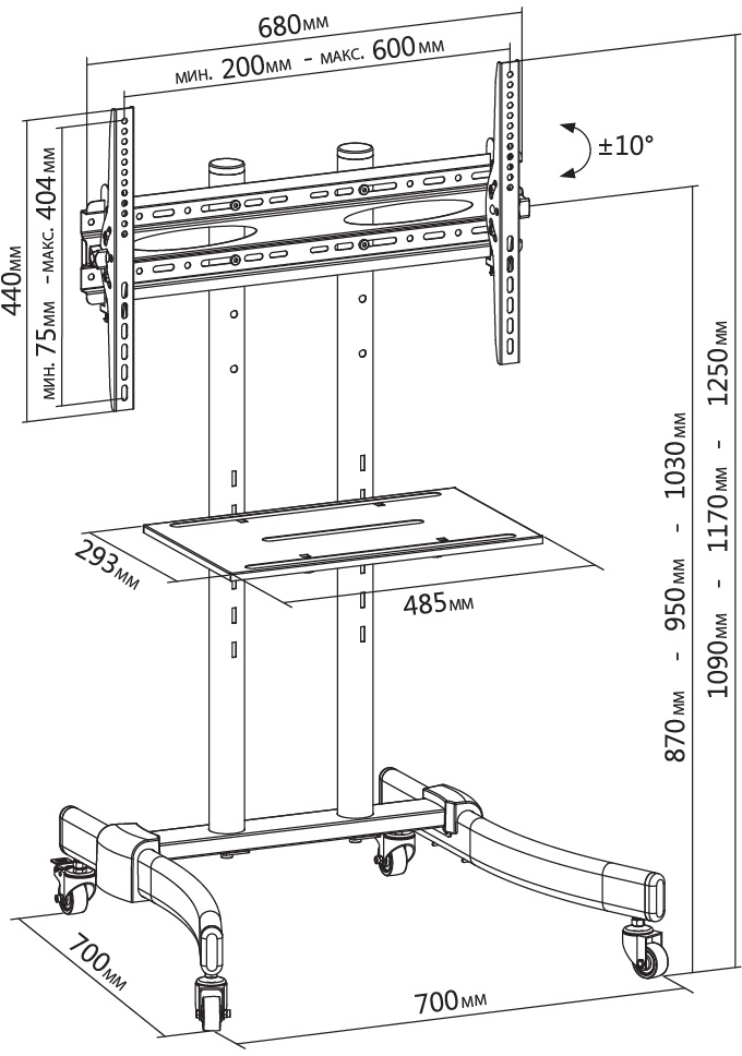 | Максимальный вес оборудования | 50 кг |