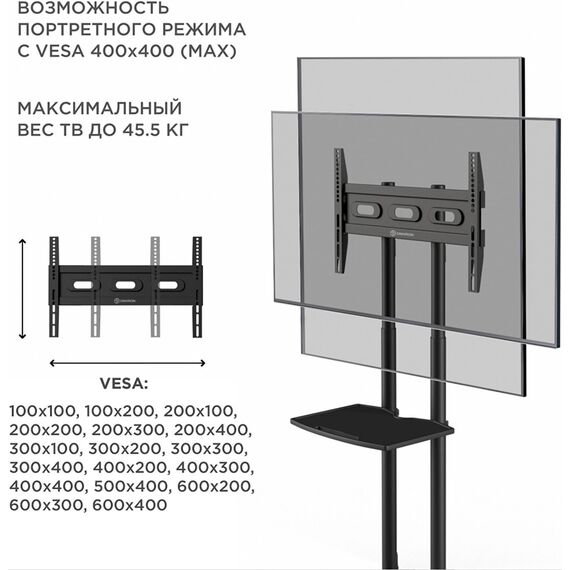 Подставка для телевизора ONKRON TS1351 черный 32-65 макс.50кг напольный мобильный