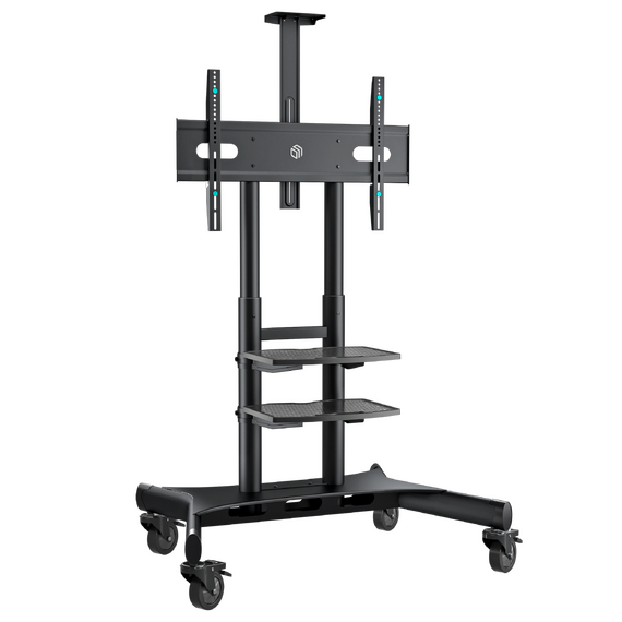 Мобильная стойка ONKRON TS1881 BLACK на 1 ТВ, 50-86" от 300х100 до 800х500, макс нагр 90.9кг, 2 полки, высота 1350-1650мм, черный