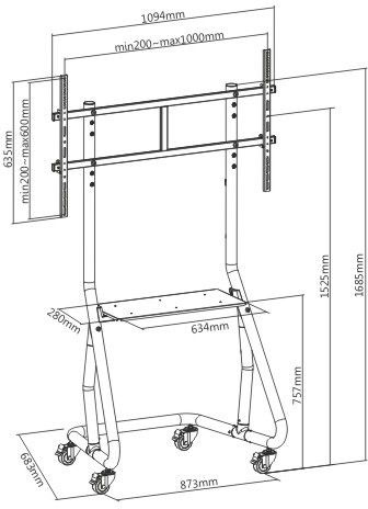 Подставка для телевизора Ultramounts UM298 черный 60-105 макс.100кг напольный мобильный